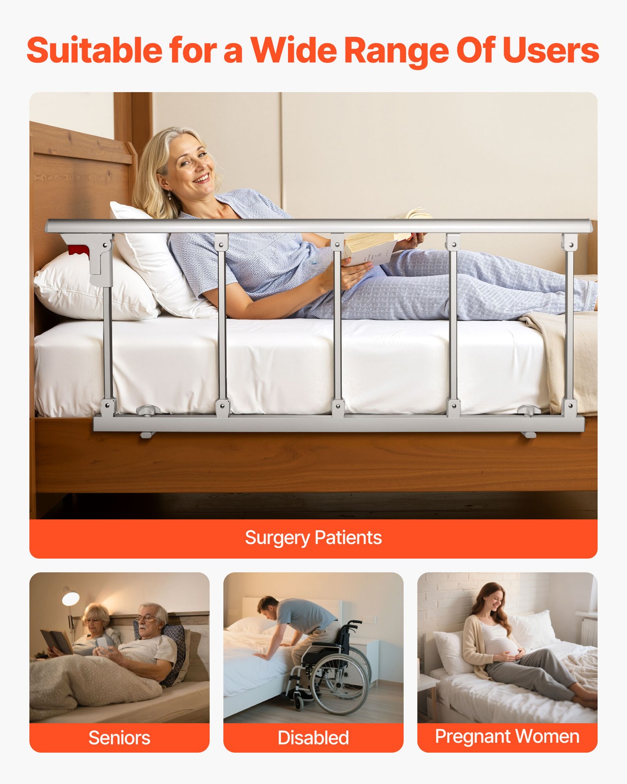 VEVOR 48 in Foldable Bed Rail for Elderly with Fixing Strap Adjustable Height