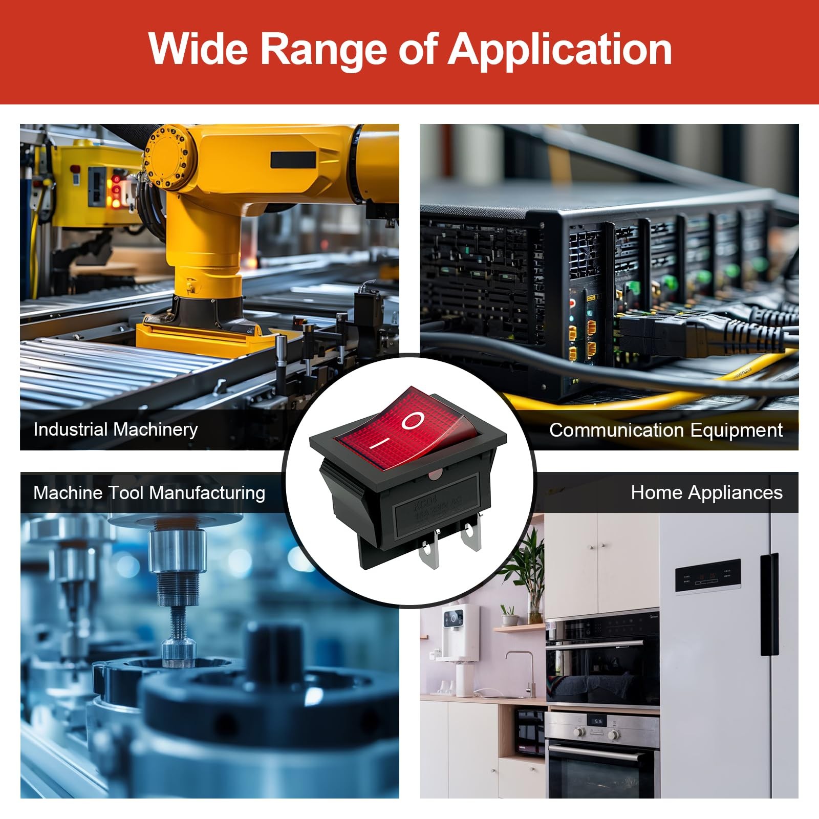 Boat Rocker Switch KCD4 Red 2-Position DPST Panel Switch with 4-Pin Rated at ...