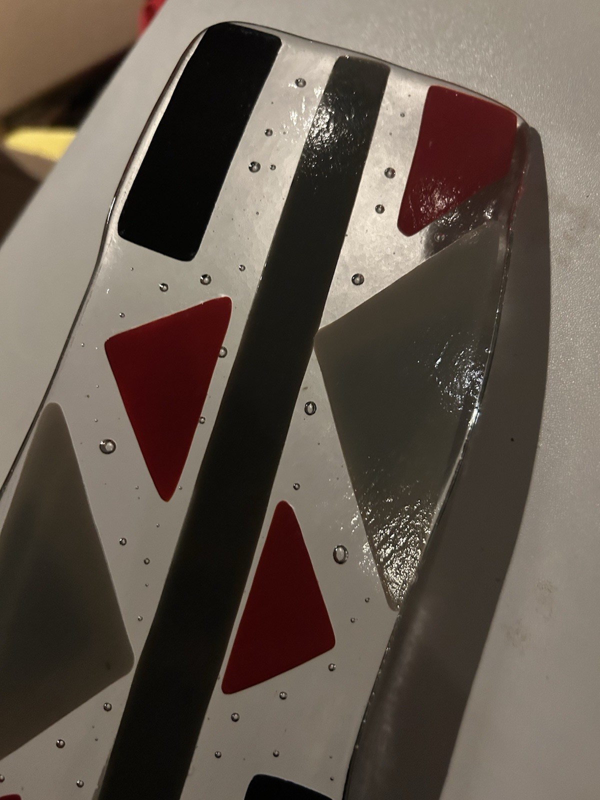 как выглядит Fused Glass Mosaic Style Rectangle Bowed Plate Red Gray Black Controlled Bubbles фото