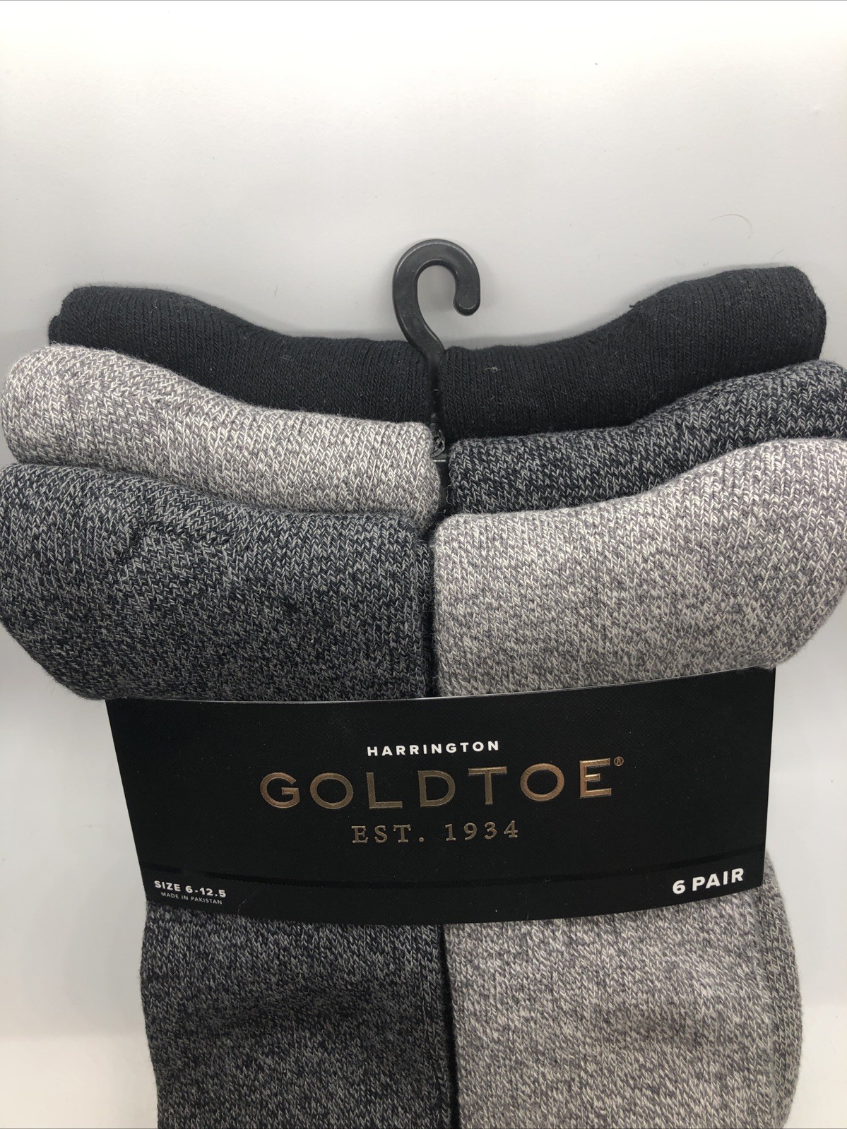 как выглядит Gold Toe Mens Harrington Cotton Crew Socks 6 Pairs Black/Charcoal/Light Gray фото