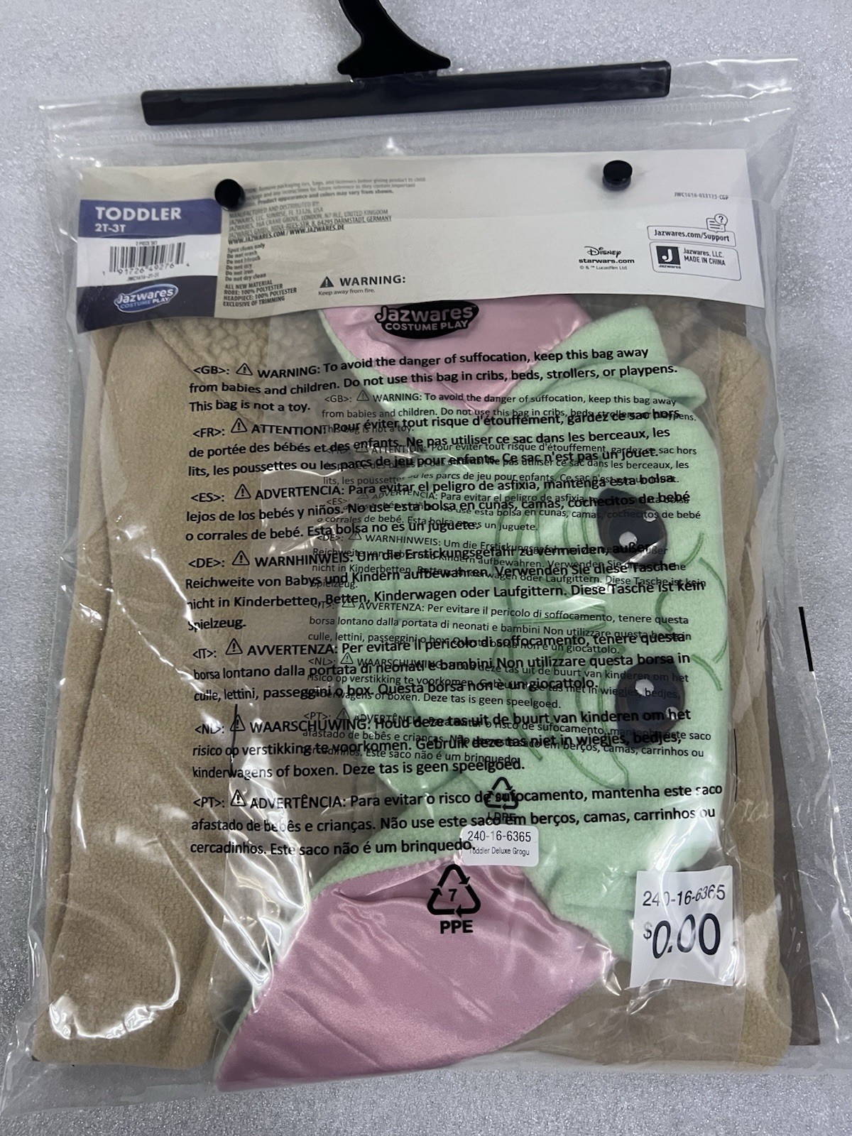 как выглядит Halloween Costume Star Wars The Mandalorian Grogu Toddler Size 2T-3T Jazwares фото