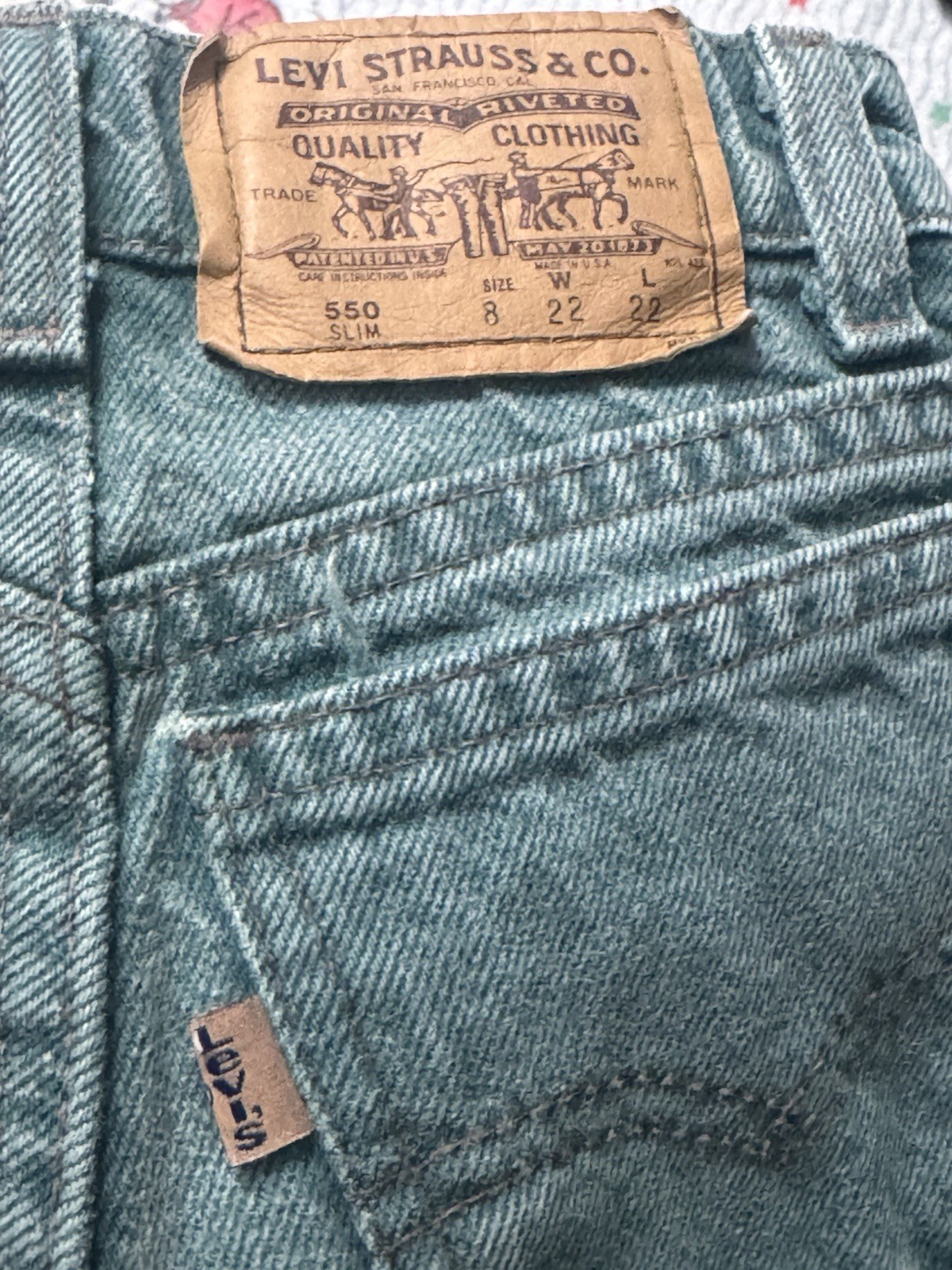 как выглядит Vintage Levi s 550 Green Denim Jeans Kids Size 8 W22 L22 USA High Rise 90s фото