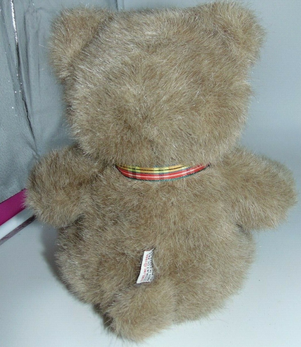 как выглядит 1986 10" Gund Brown Teddy Bear with Plaid Bow фото