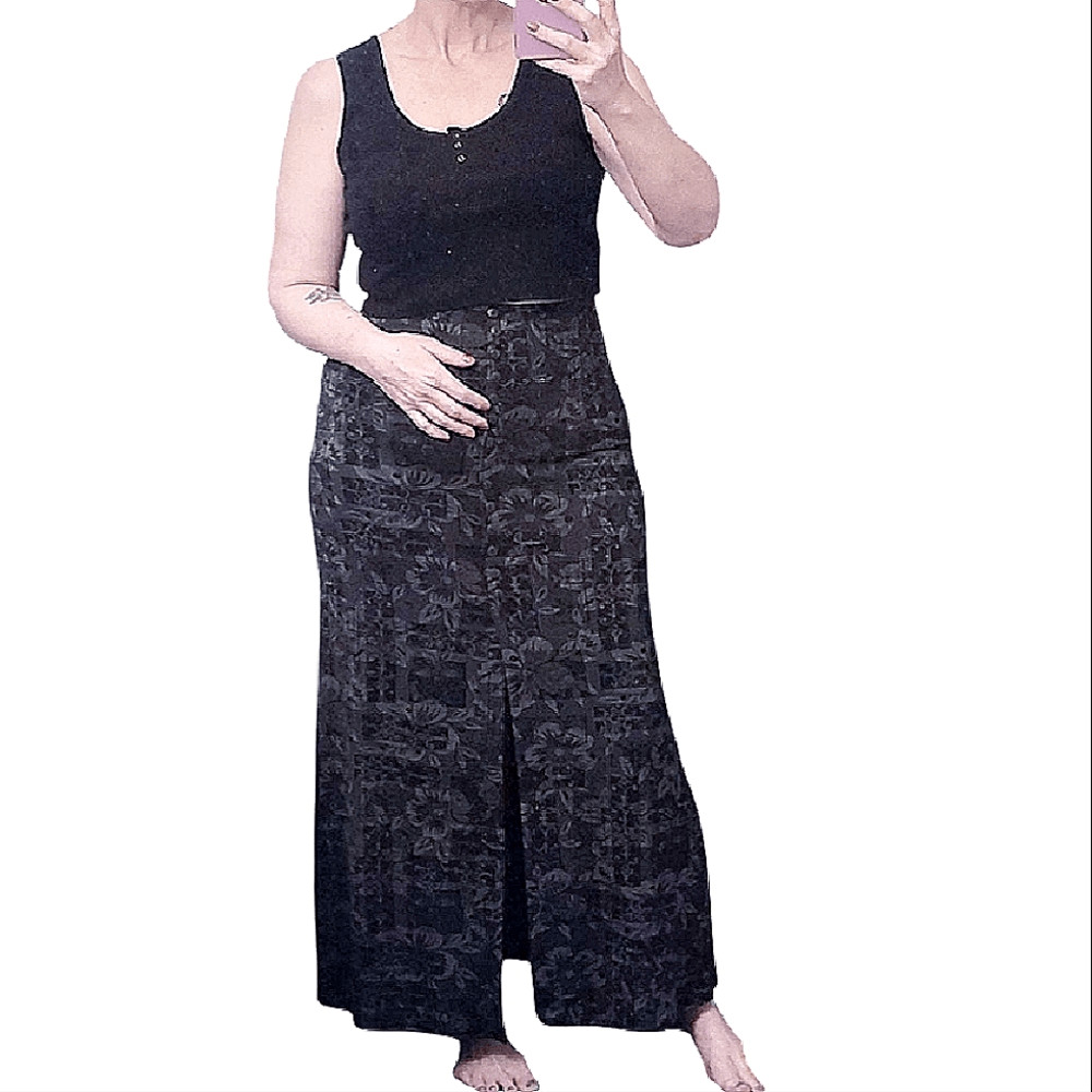 как выглядит VTG 90s Black Floral DarkFairy Grunge Button Front Maxi Skirt Med Firm Price фото
