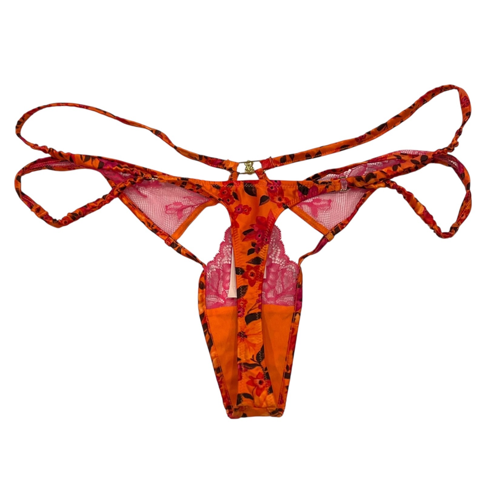 NWT VICTORIA'S SECRET Thong Pantie Sz XS-S-M-L-XL Silky Black Orange Pink Lace