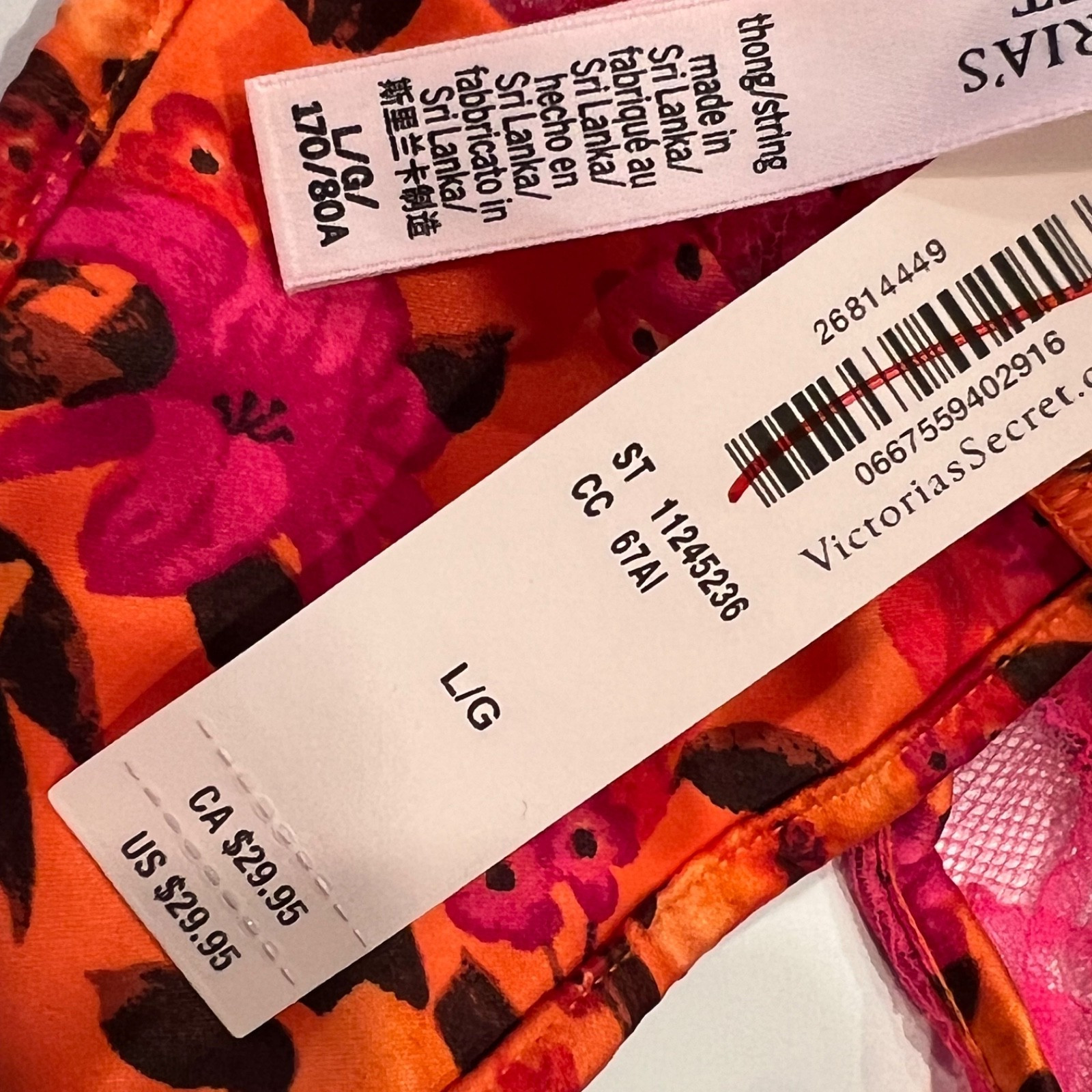как выглядит NWT VICTORIAS SECRET Thong Pantie Sz XS-S-M-L-XL Silky Black Orange Pink Lace фото