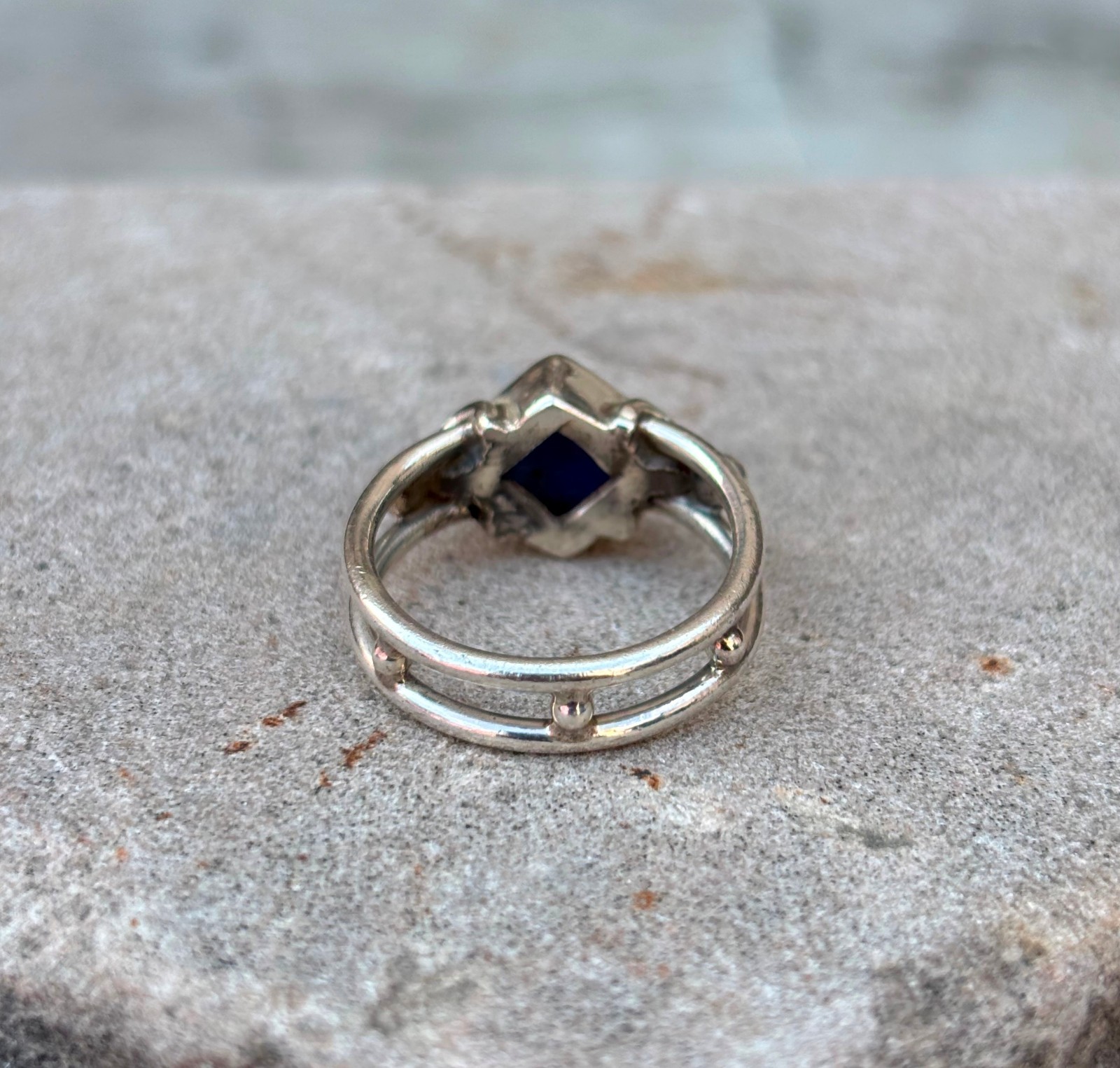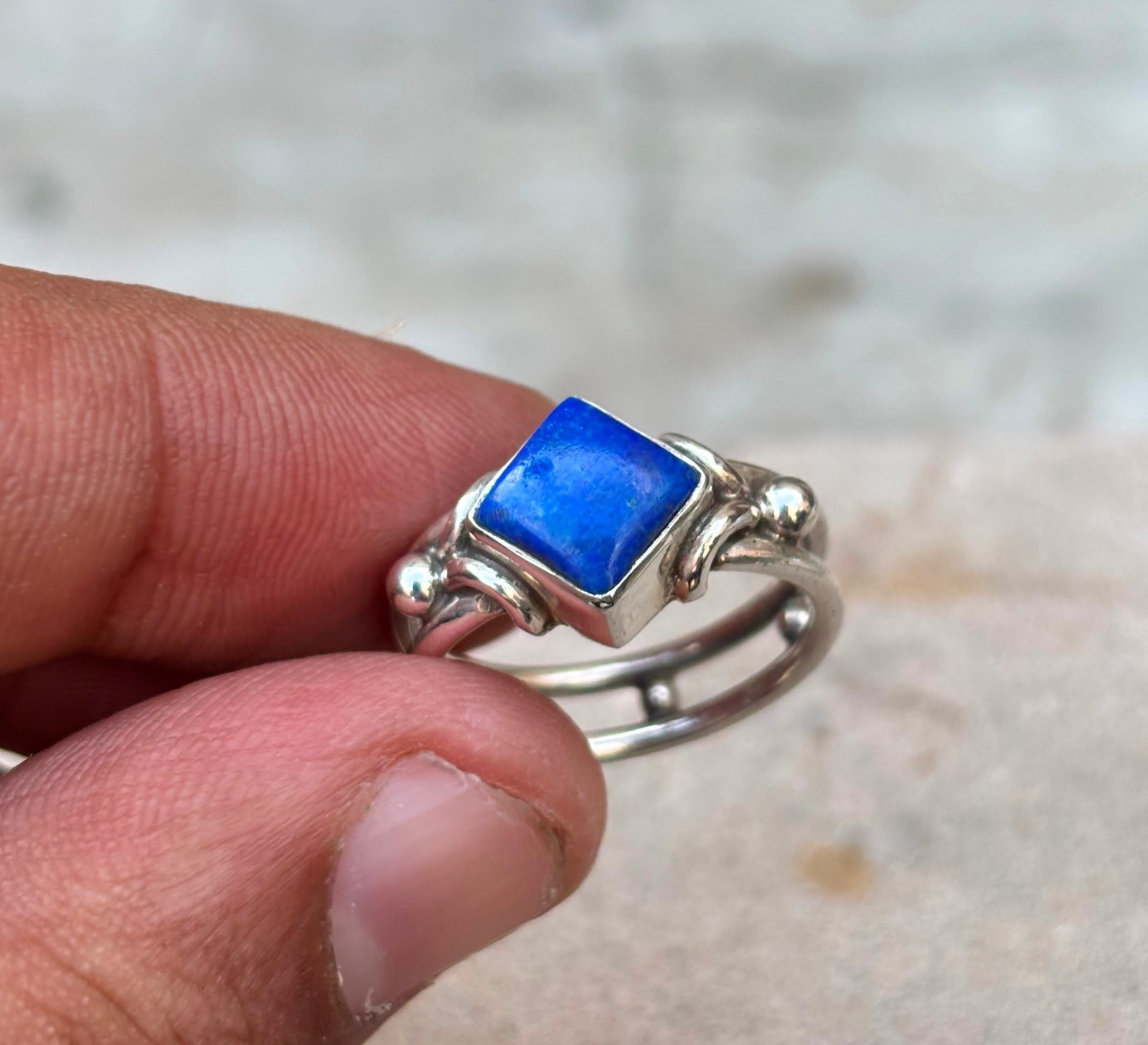 Lapis Lazuli Gemstone Ring 925 Sterling Silver Boho Statement Ring