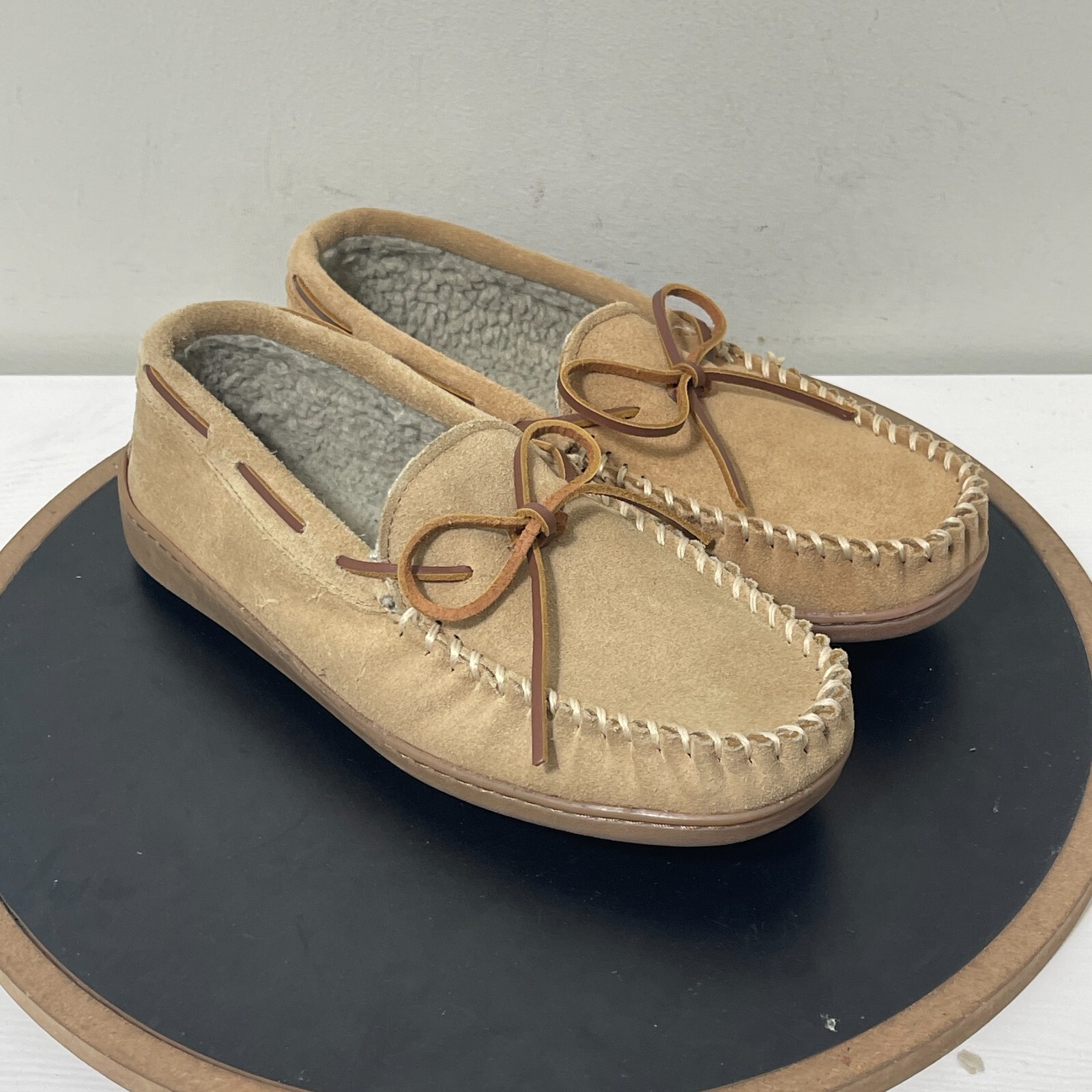 Minnetonka Moccasin Slippers Men 9M Leather Faux Fur Lined Beige