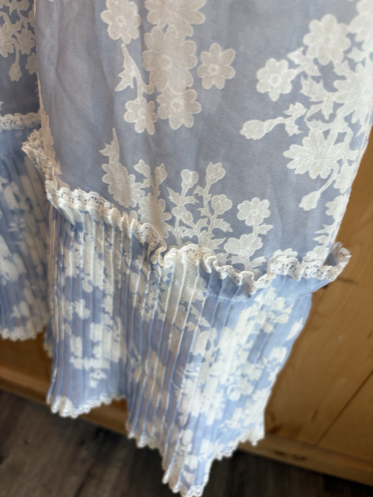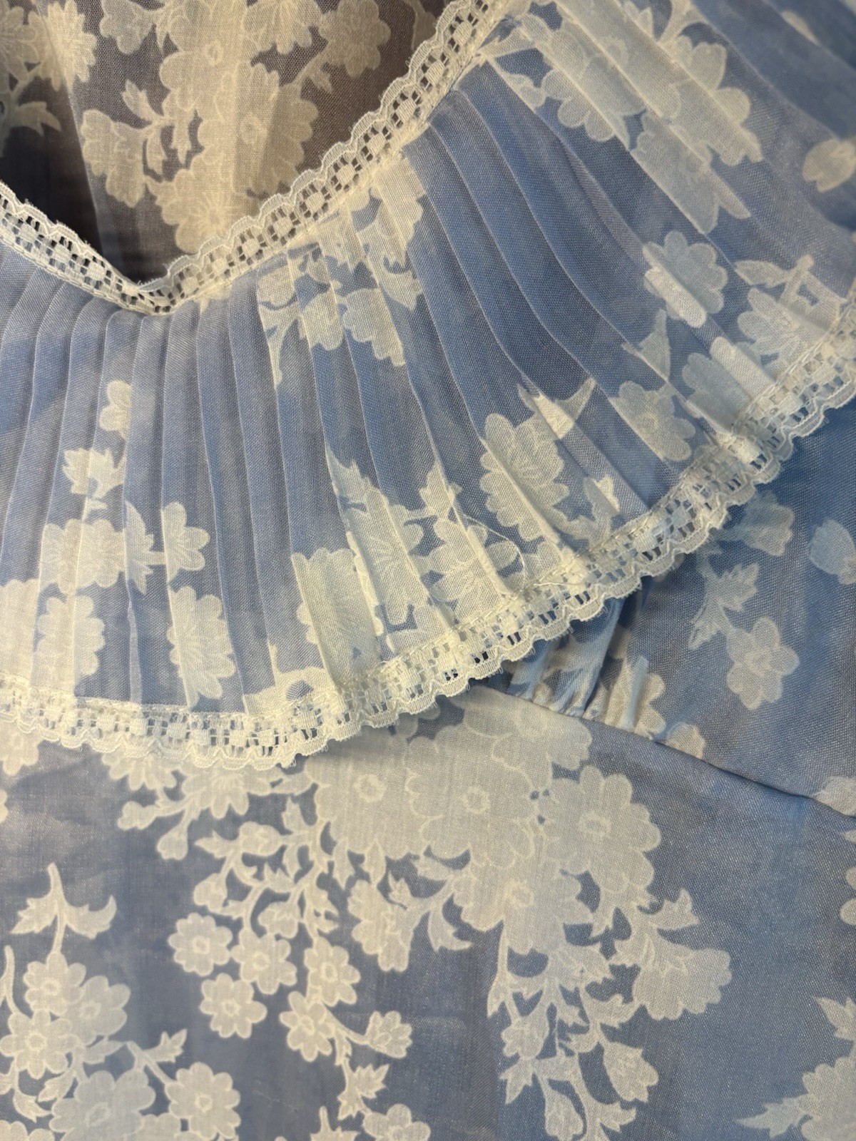 как выглядит VTG Jean Pierre Blue White Floral Slip Dress Nightgown STUNNING EUC Sheer S/M фото