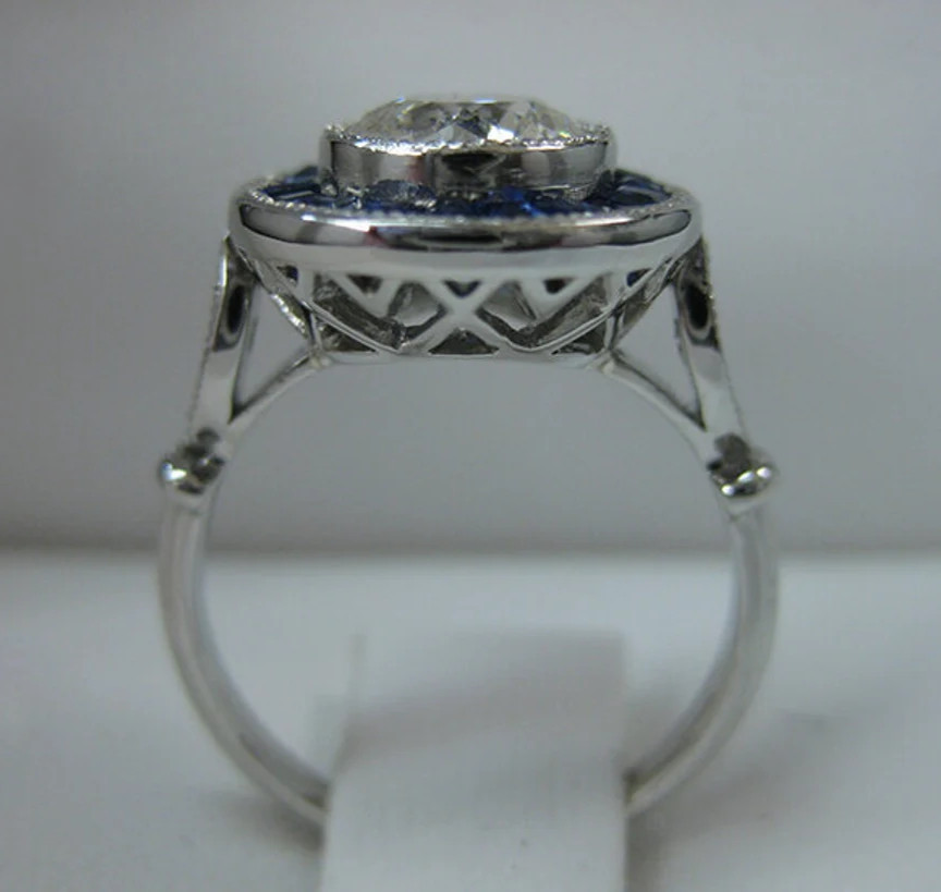 как выглядит 1.67Ct White Round Bezel Set Art Deco Style Halo Engagement Wedding Ring фото