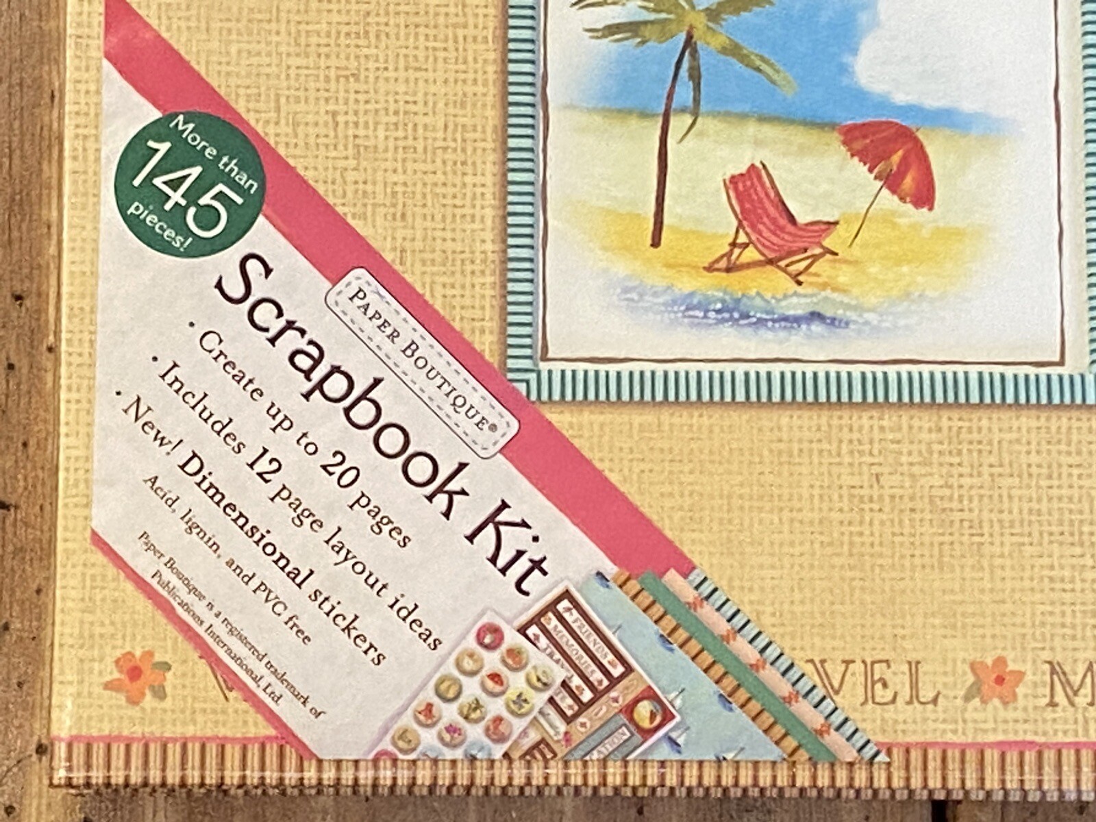 как выглядит PAPER BOUTIQUE Scrapbook Kit 145 Pieces TRAVEL VACATION MEMORIES 20 Pages NEW фото