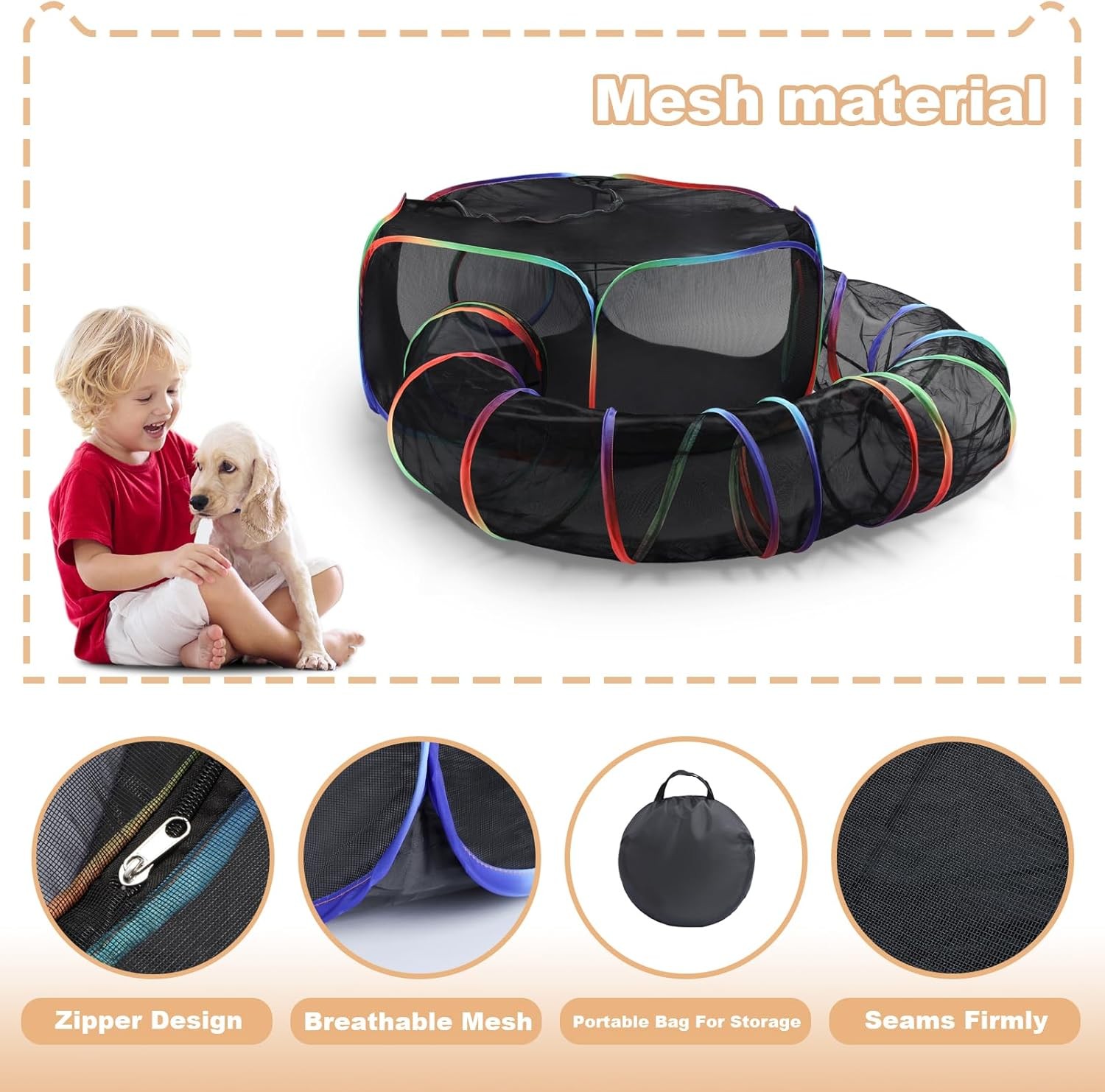 Cat Enclosure Outdoor Cat Playpen Portable Cat Tents Foldable Cat Tunnel w/ Bag