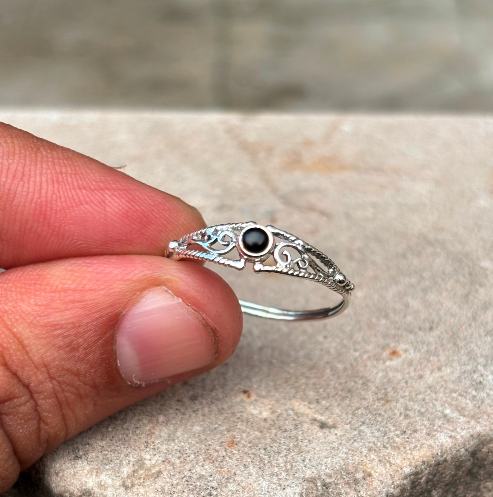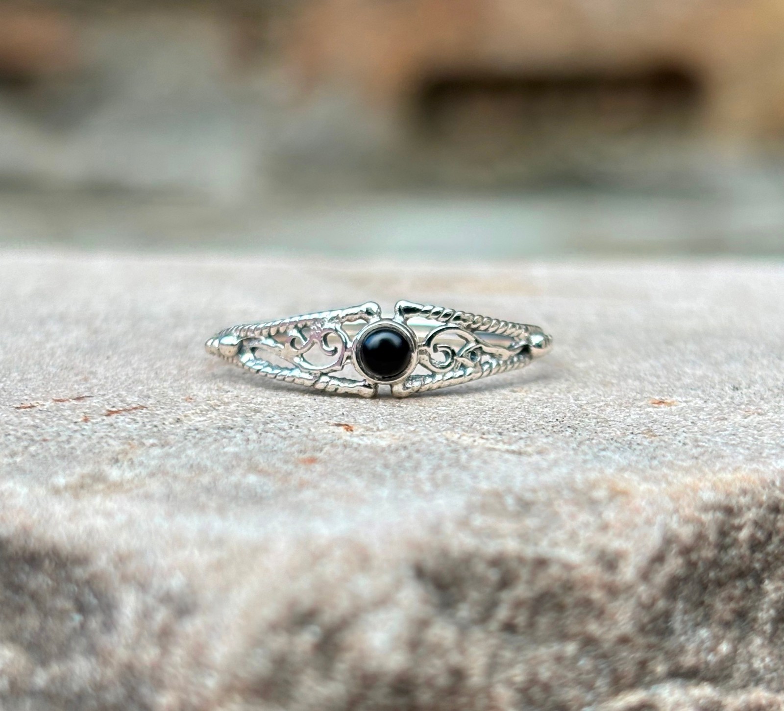 Black Onyx Filigree Ring 925 Sterling Silver Minimalist Statement Boho Jewelry