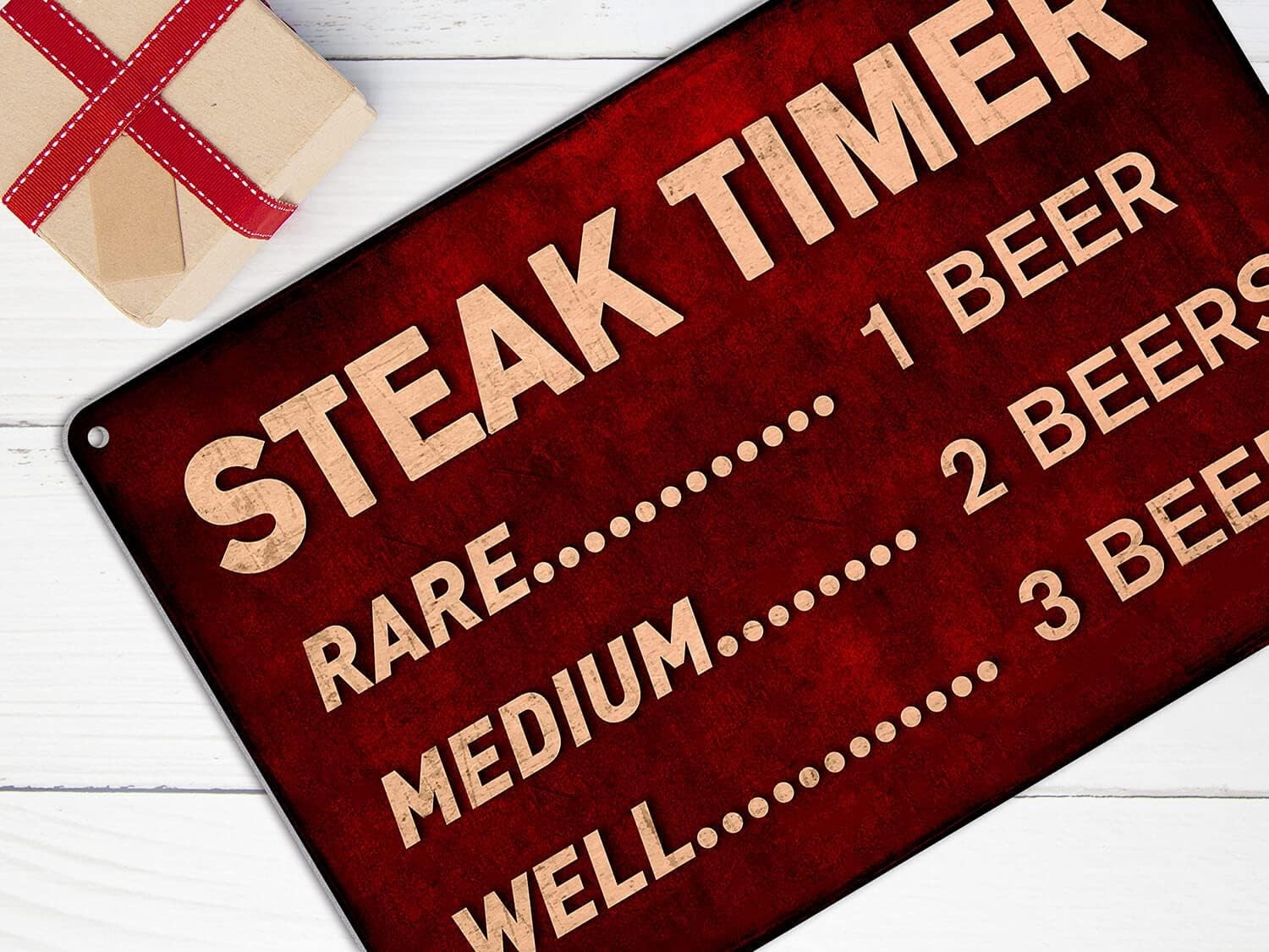 Funny Beer Sign Steak Timer - Metal BBQ Rules Sign, Outdoor Tin Signs for Red