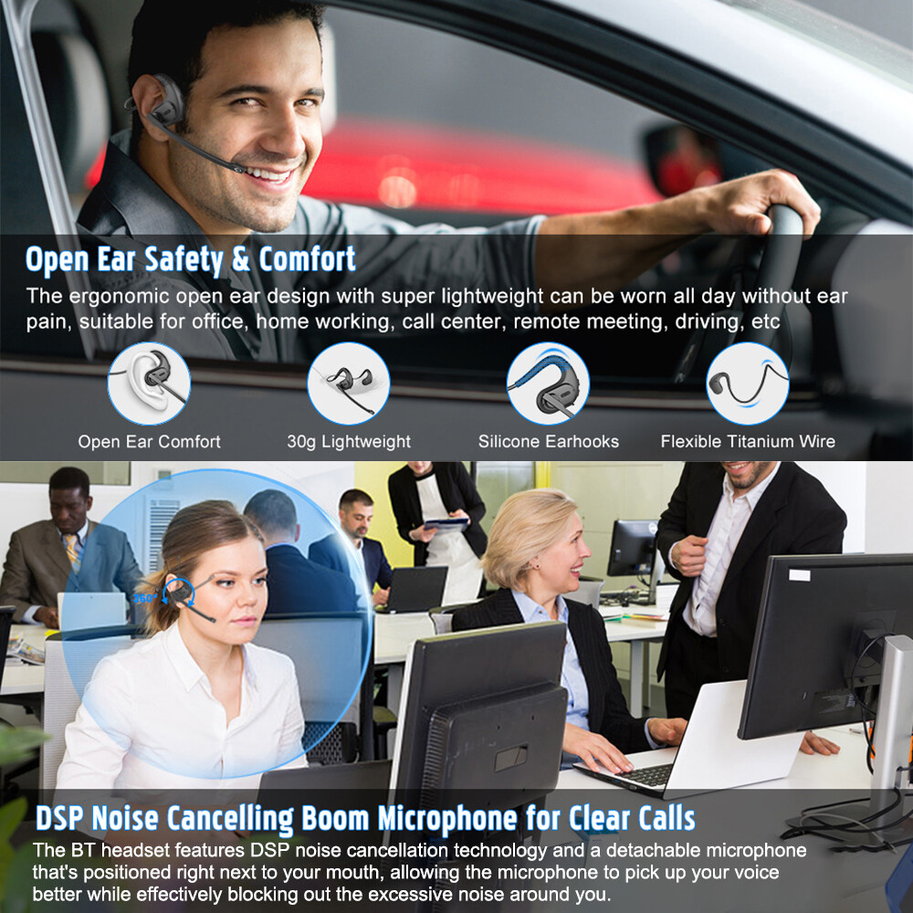 Bluetooth 5.3 Bone Conduction Headphones Wireless Headset Removable Microphone