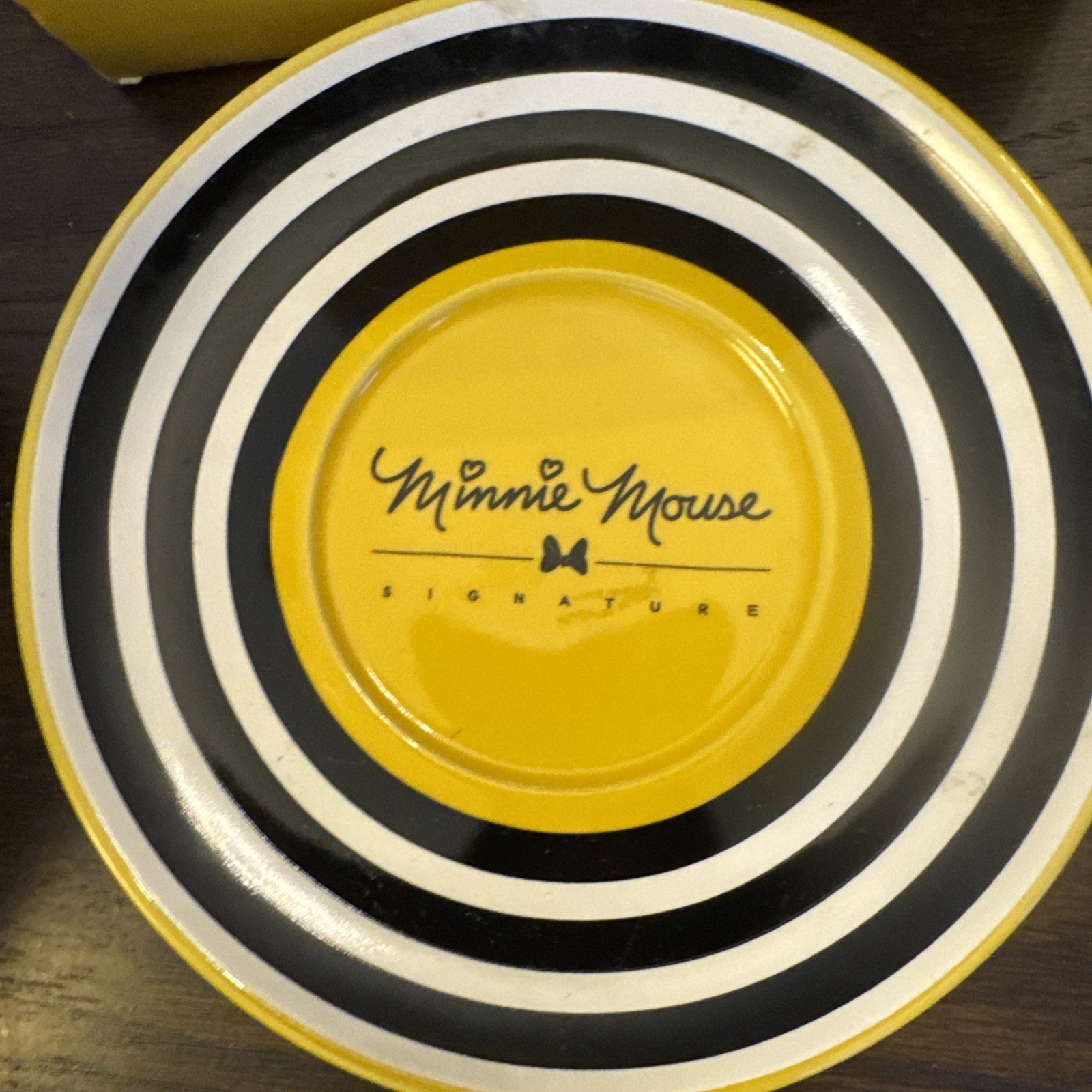 • Minnie Mouse Cup Saucer Yellow Bow Black Stripe, Disney Store Signature, Ceramic