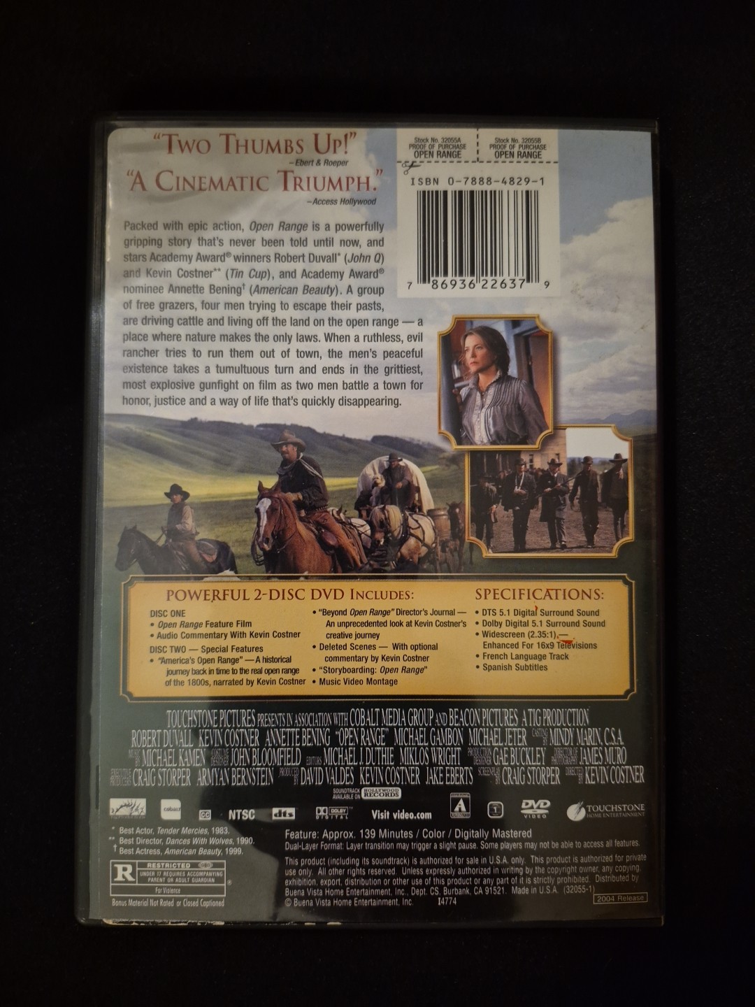 как выглядит Open Range DVD, 2003 Robert Duvall Kevin Costner Annette Bening фото