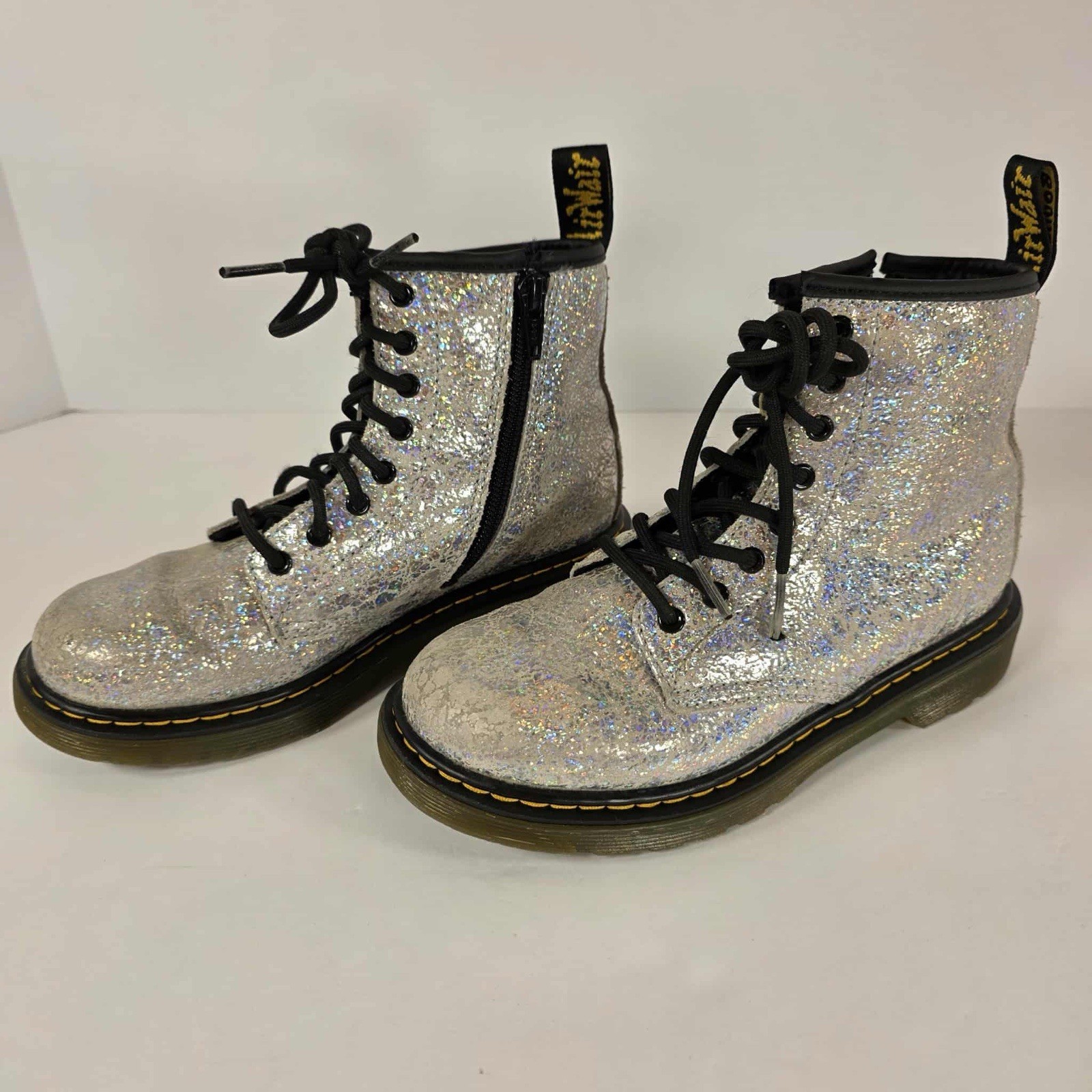 Doc Martens 1460 J Sparkle Glitter Sparkle Leather Lace Up Zip Boots Kids 2
