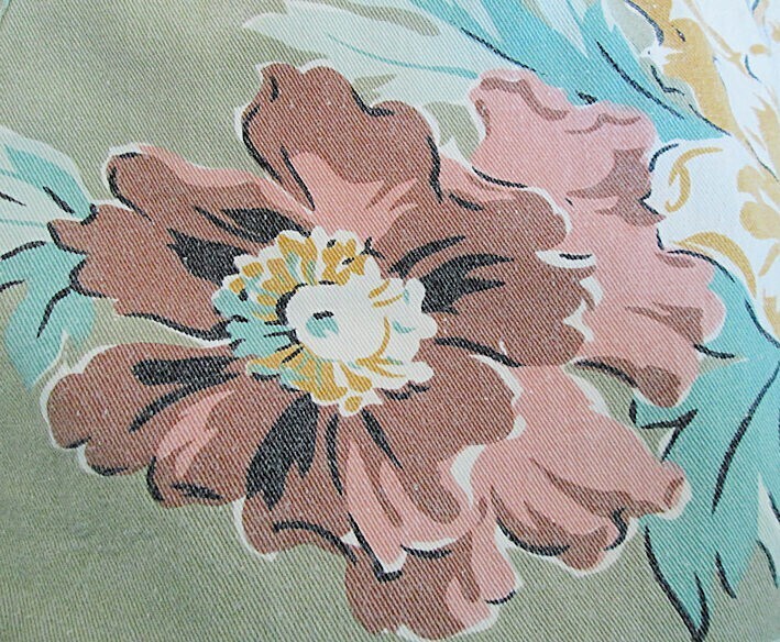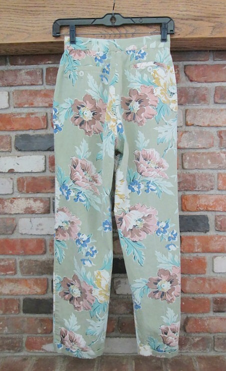 Vtg British Khaki pants womens 6 green floral high rise pleated pockets cuffed