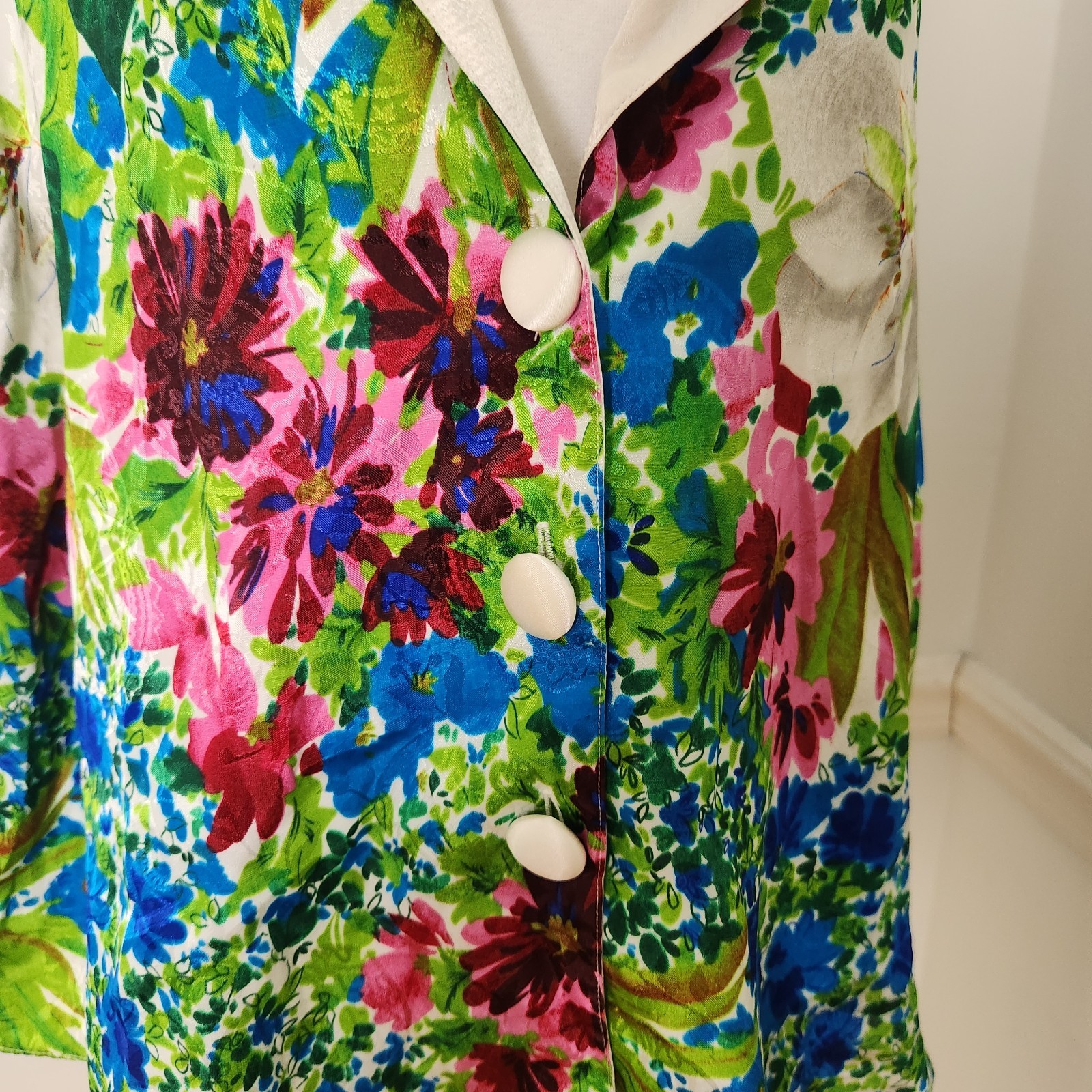 Vtg Victorias Secret Gold Label Sleep Shirt Size Large Pajama Top Satin Floral