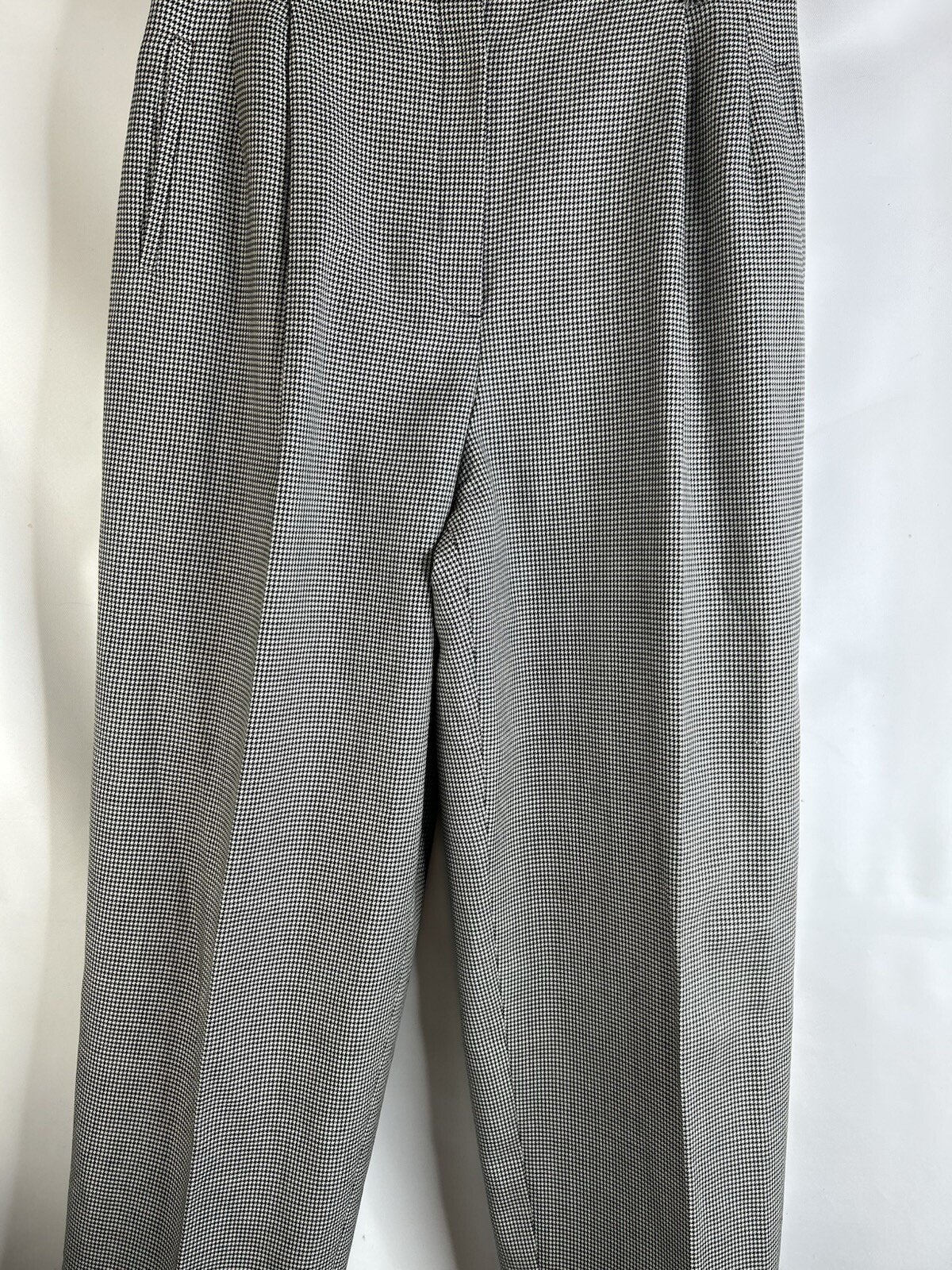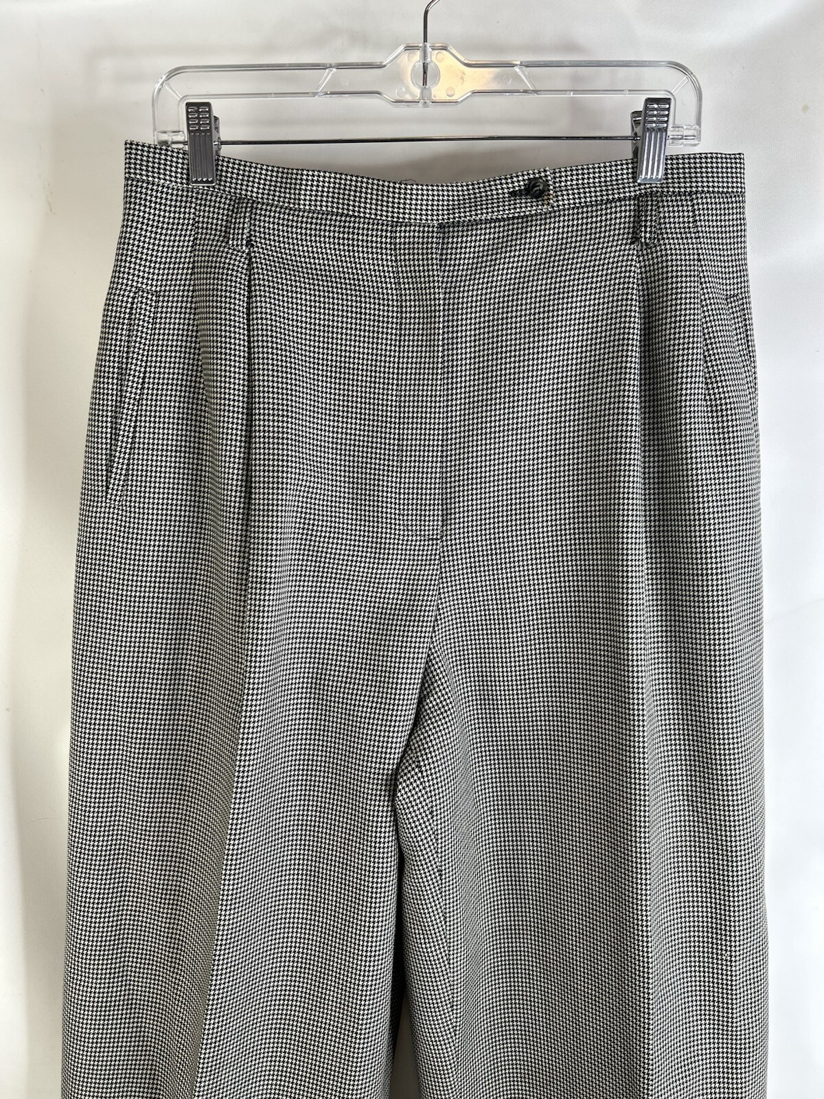 Vintage 80s Womens 14 Wool Houndstooth Plaid Pleated Cuffed Trouser Dress Pants