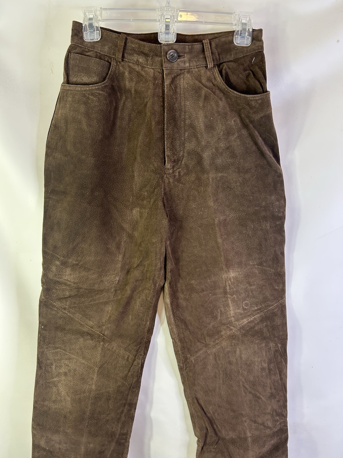 как выглядит Vintage 90s Womens 8 Suede Leather High Rise Straight Pants Western Streetwear фото