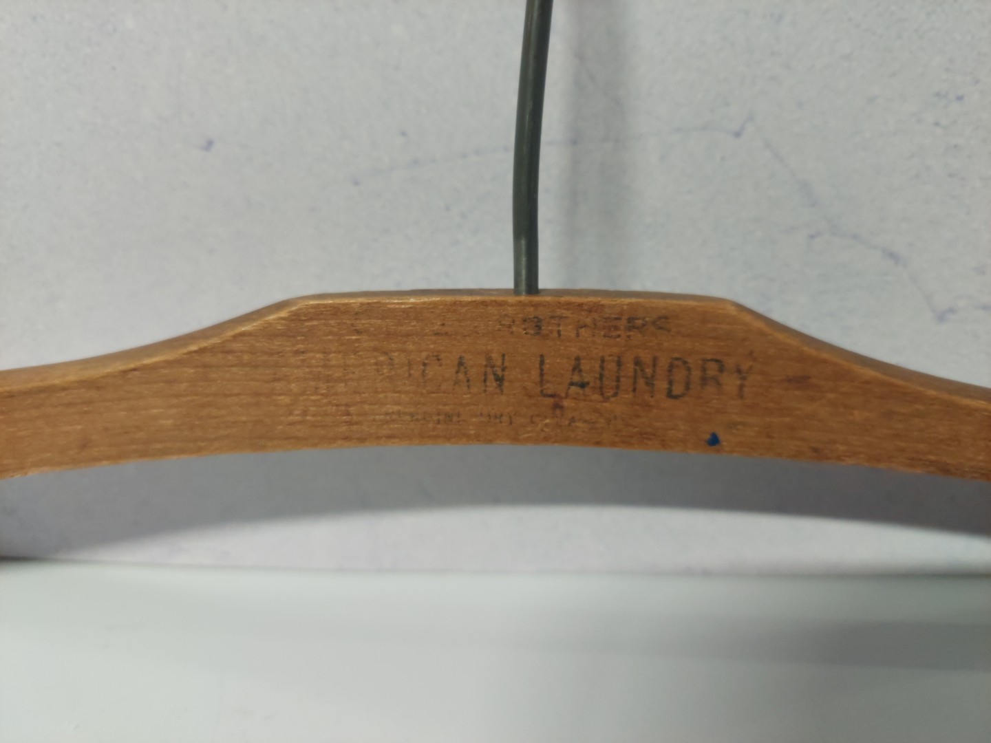 Vtg Hanger American Laundry Brothers Dry Cleaners Vintage Wooden Wood 16.5