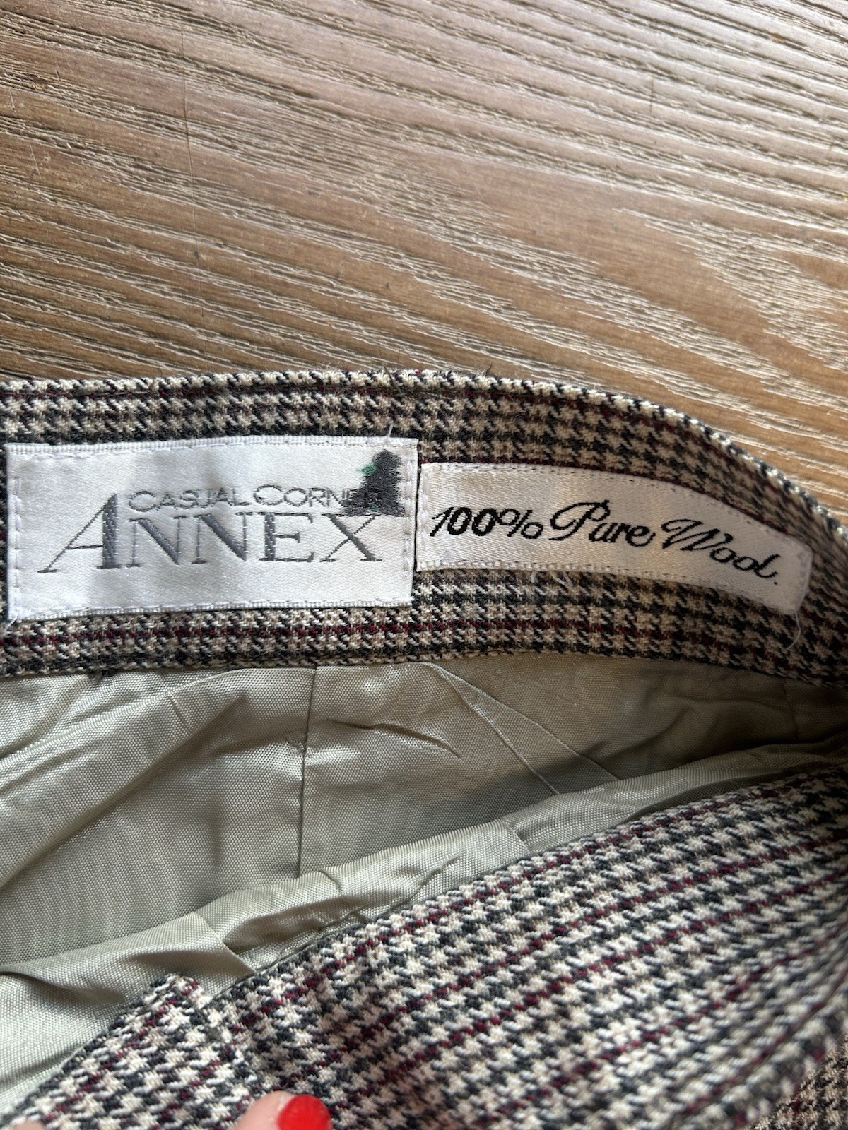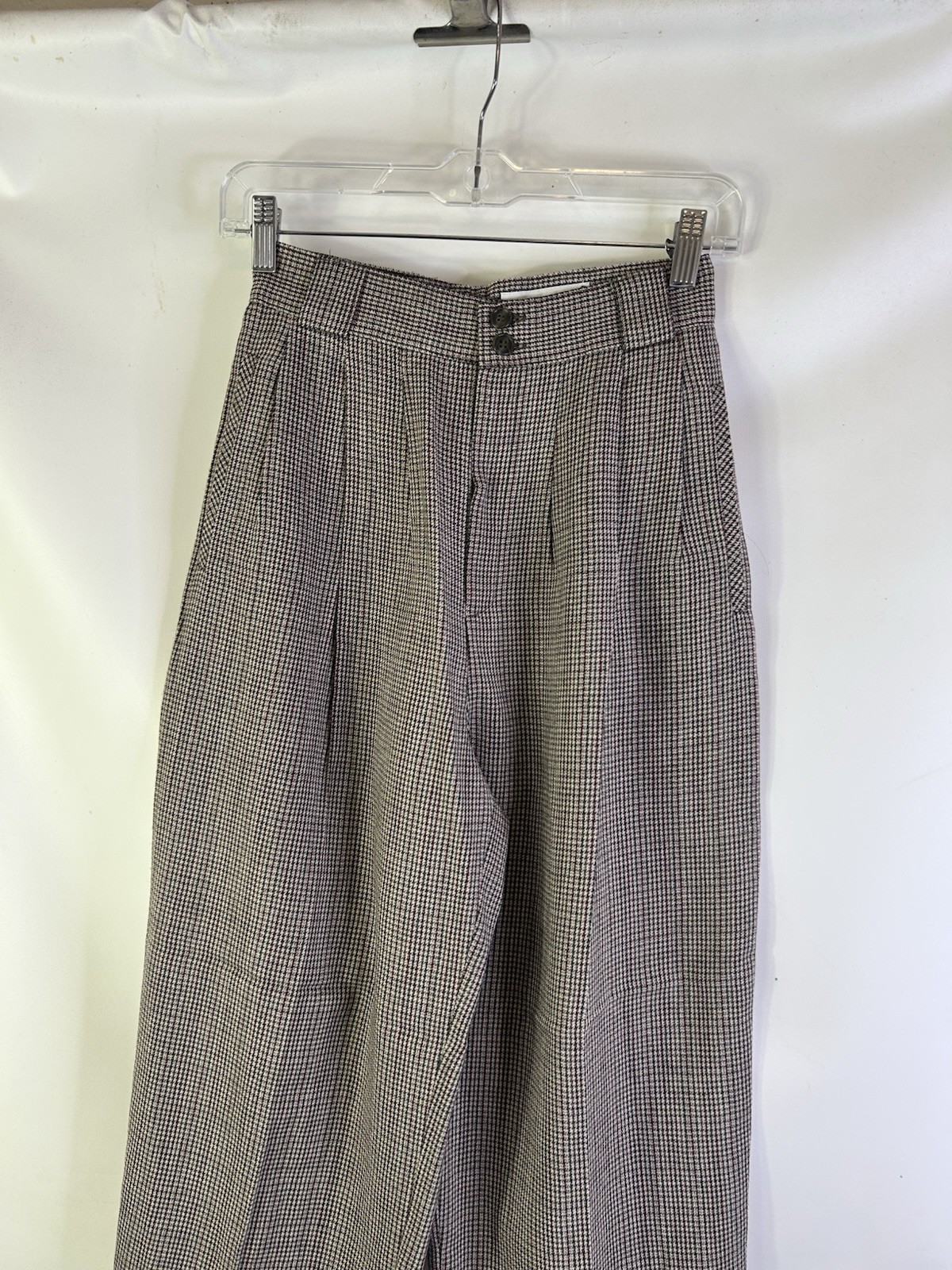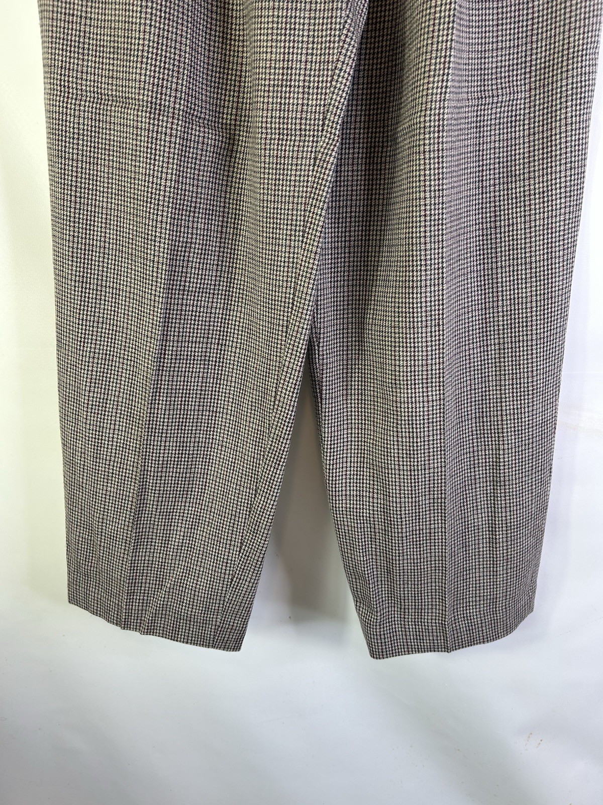Vintage 90s Womens 6 Petite Wool Houndstooth Plaid Pleated High Rise Pants