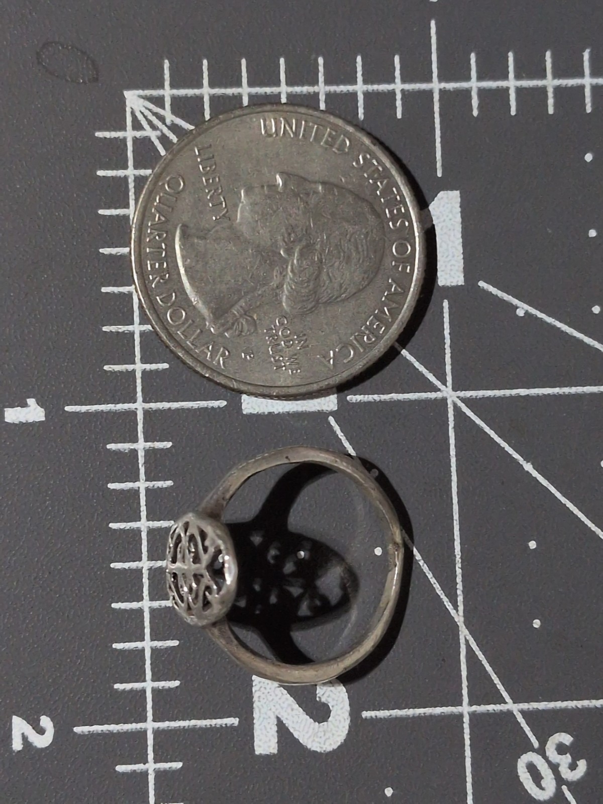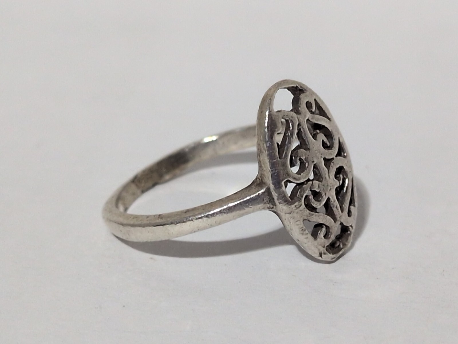 как выглядит VINTAGE STERLING SILVER CUT OUT FILIGREE DESIGN SIZE 5 RING 1.6MM RING 925 фото