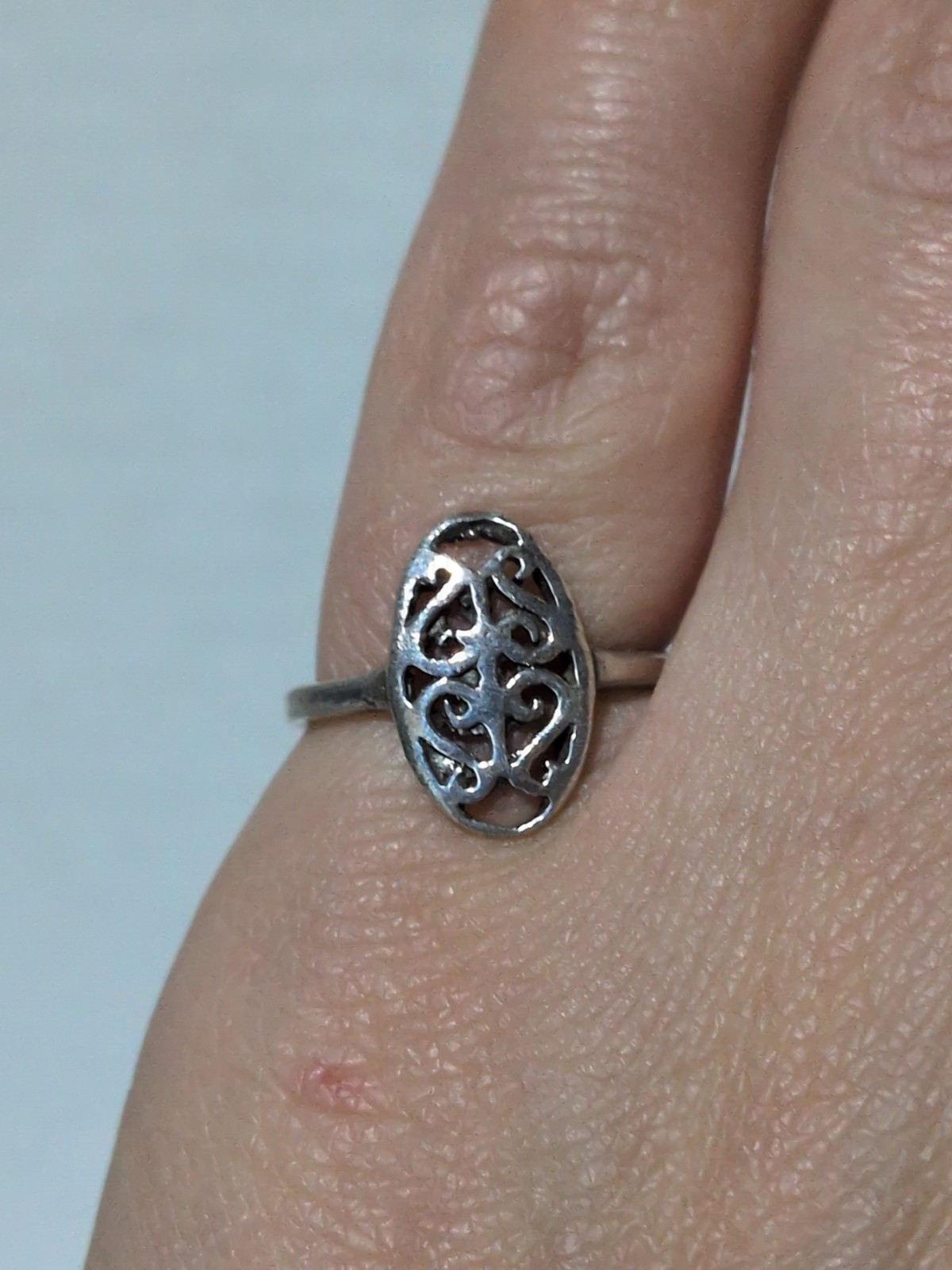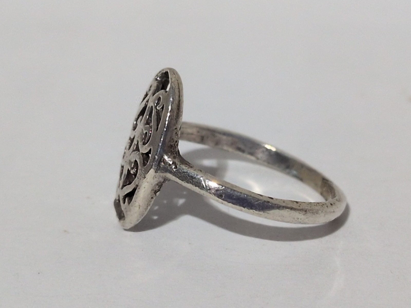 VINTAGE STERLING SILVER CUT OUT FILIGREE DESIGN SIZE 5 RING 1.6MM RING 925