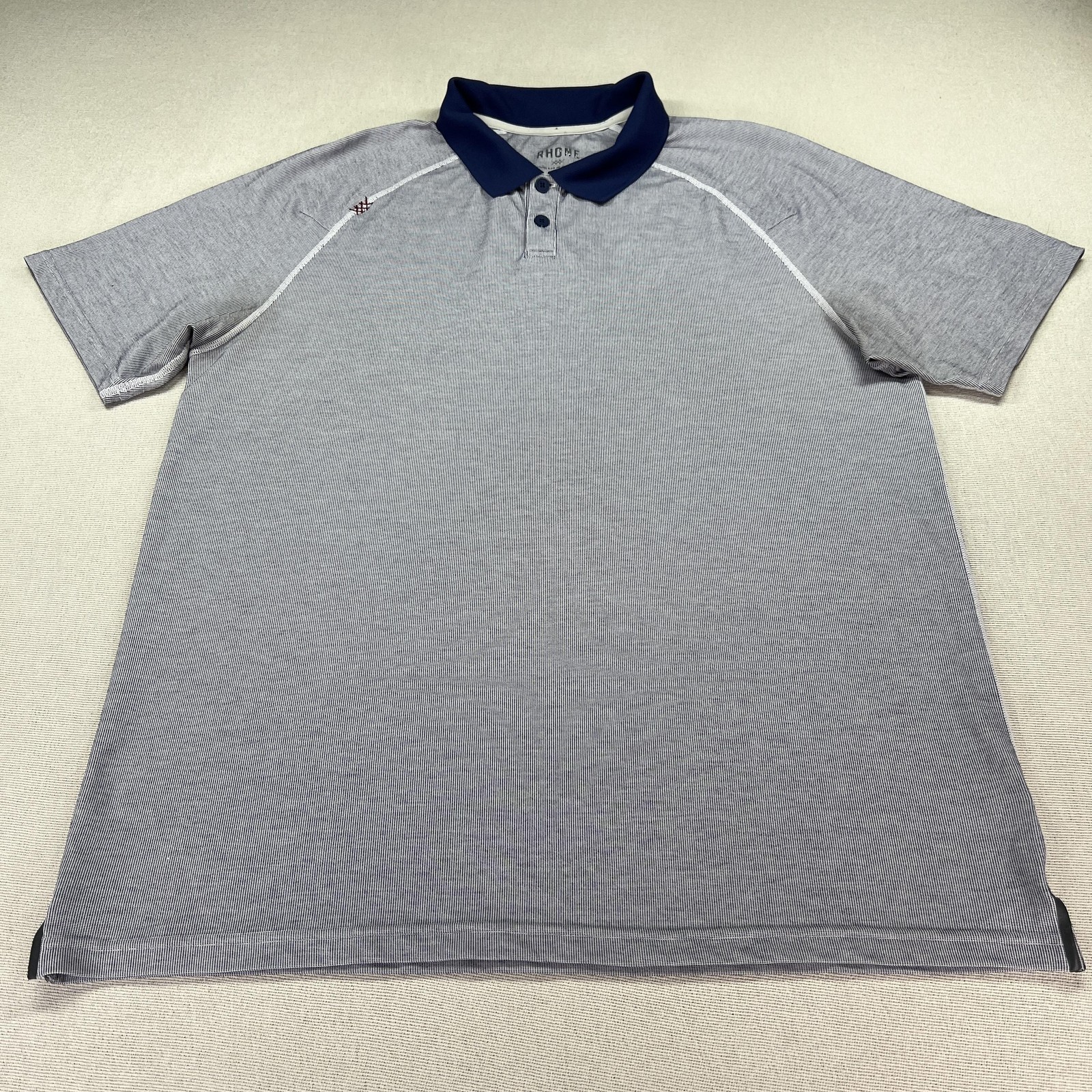 Rhone Polo Shirt Mens Large Gray Navy Performance Stretch Raglan Golf Casual