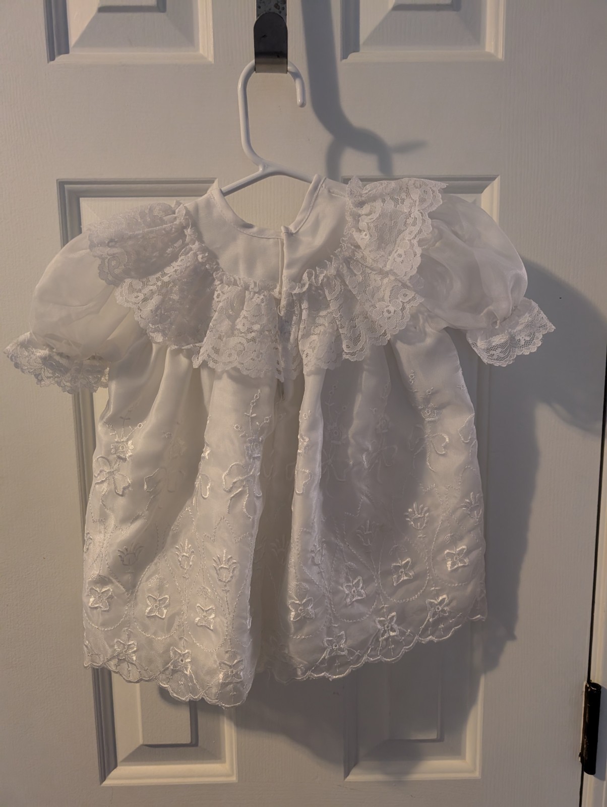 Girls Vintage White Lacy Frilly Dress Sz. 18-24 Months VGVC Made In The USA