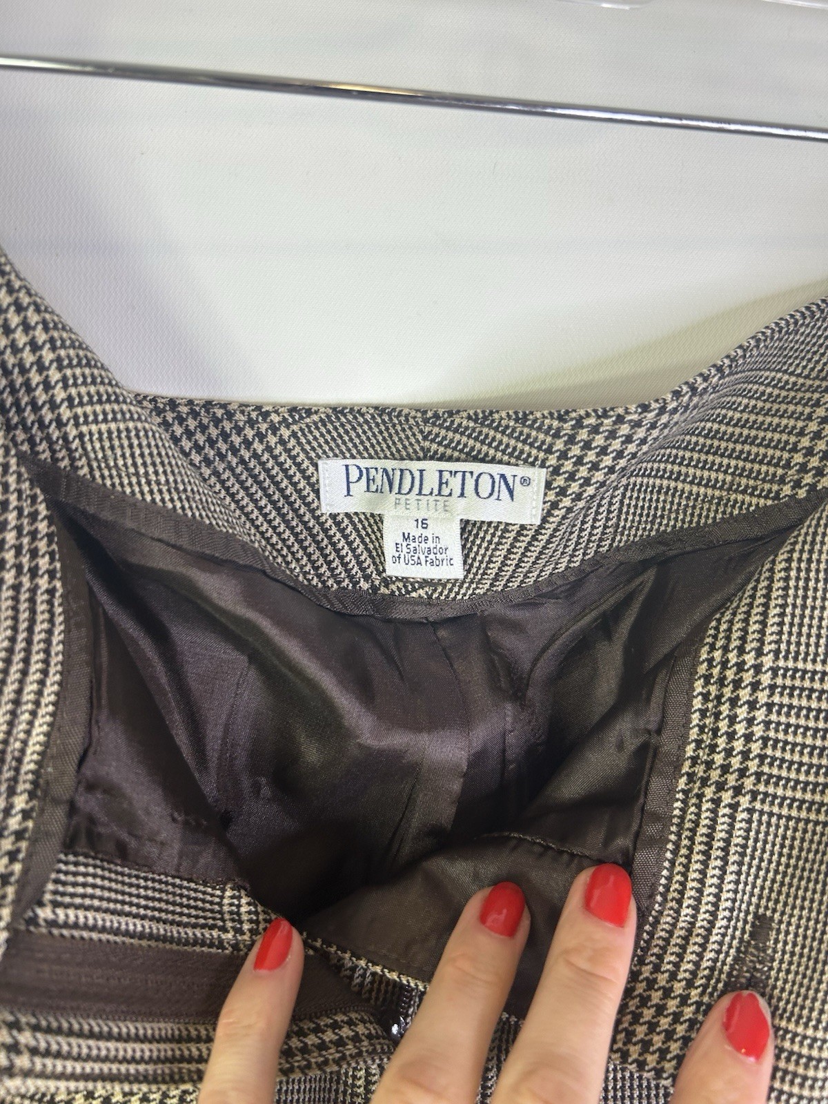 Vintage 90s Pendleton Womens 16 Petite Virgin Wool Houndstooth Plaid Pants Money