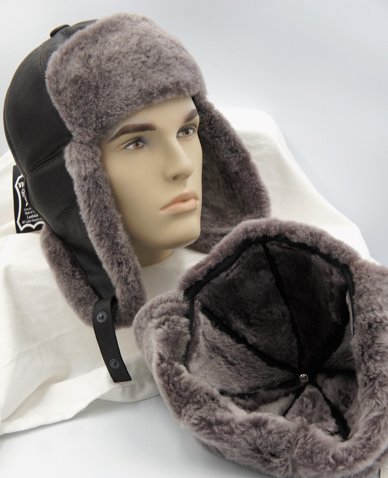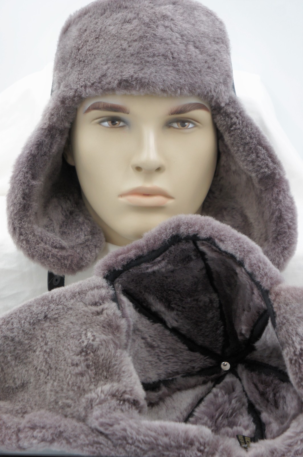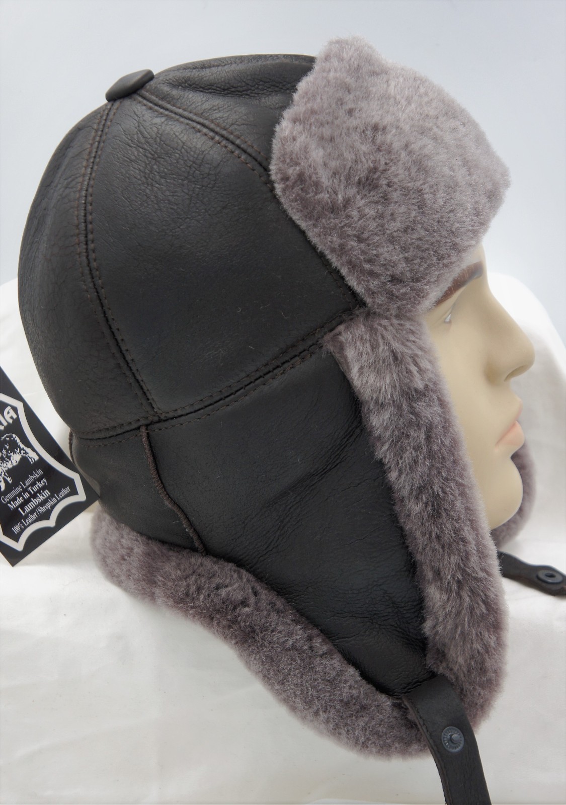 как выглядит BROWN /GRAY Real Sheepskin Shearling Leather Hat Trapper Ushanka Hunting M-3XL фото