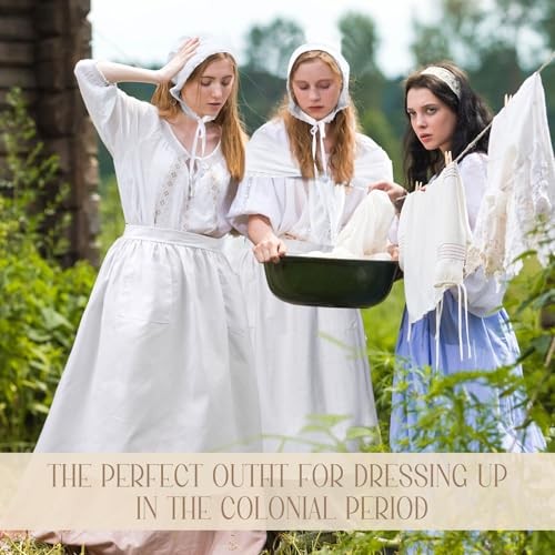3 Pieces Women Colonial Costume Set White Mob Cap Bonnet Shawl Half Vintage