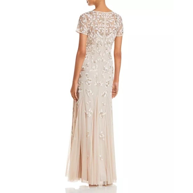 как выглядит New Adrianna Papell Sz 10 Biscotti Beaded Godet Short Sleeve V-Neck Evening Gown фото