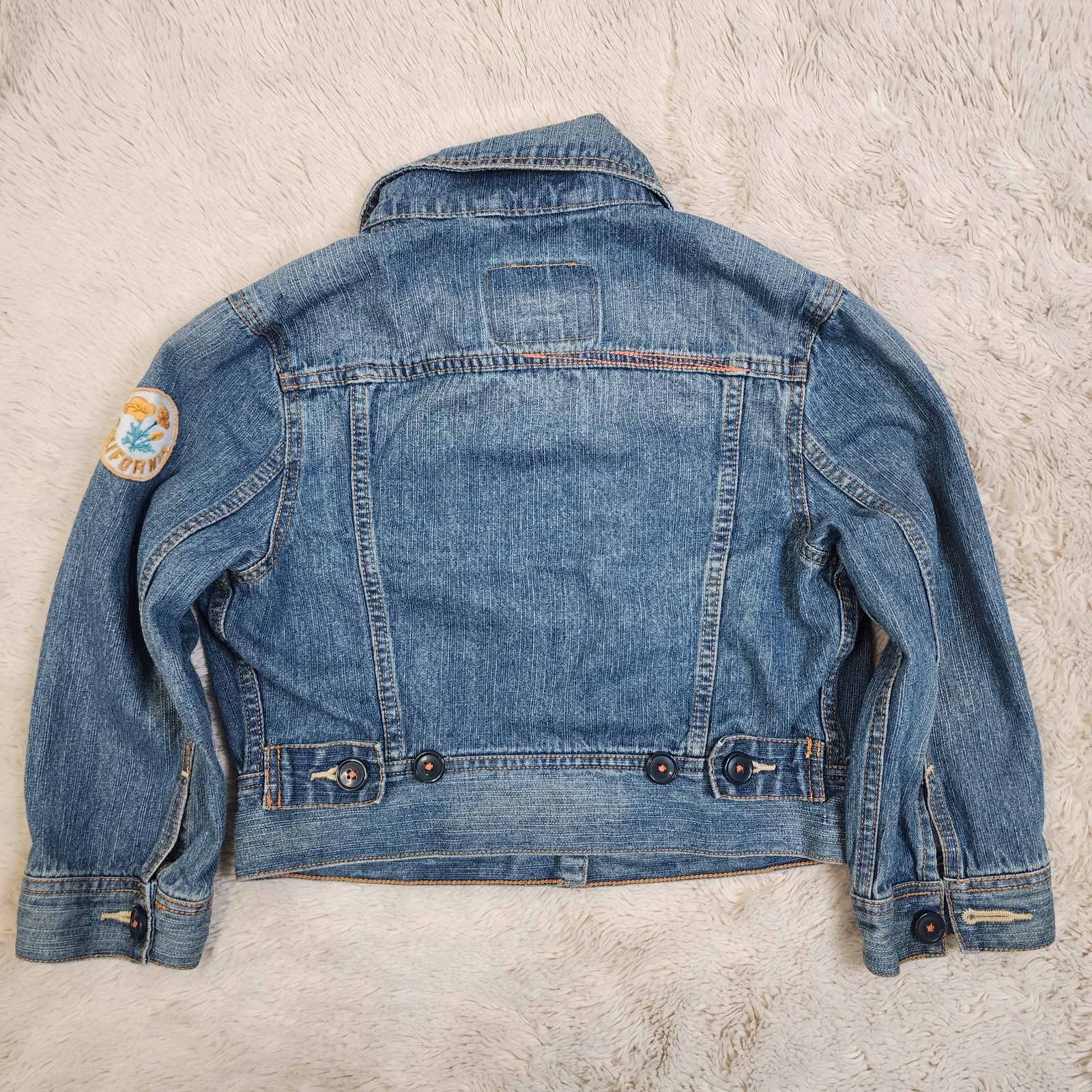 как выглядит Levis Jean Jacket Girls Size Medium Blue Denim Trucker Patches Button Down фото