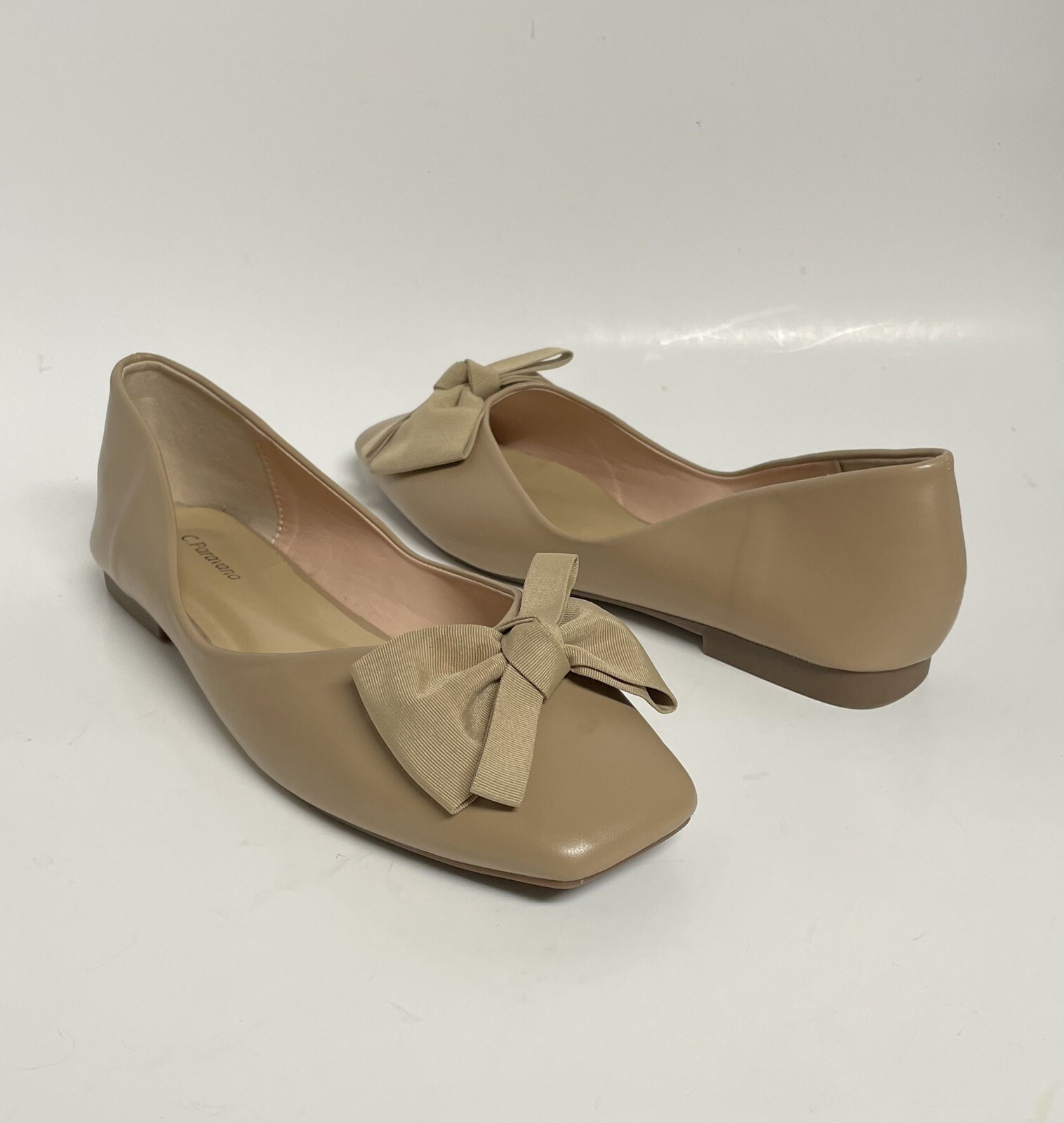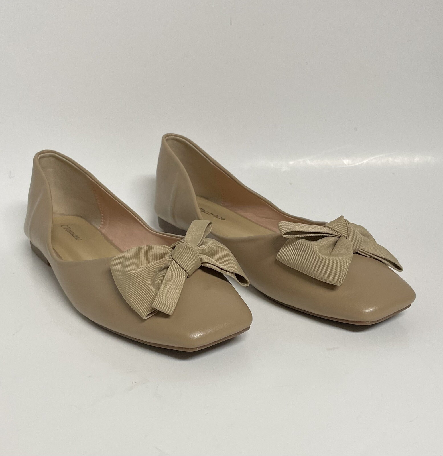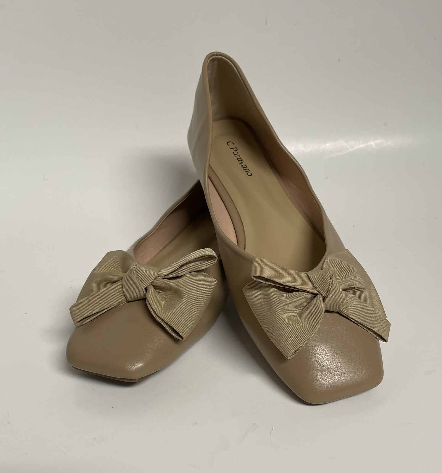 как выглядит C. Paravano Bowknot Ballerina Flats Bow Sz 9 US 41 Square Toe Beige Shoes Ballet фото