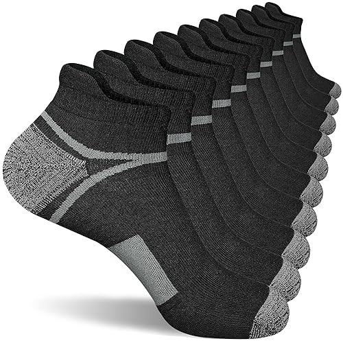 Men's Athletic Cushioned Ankle Socks Comfort Wicking Anti 9-12 Black 5 Pairs