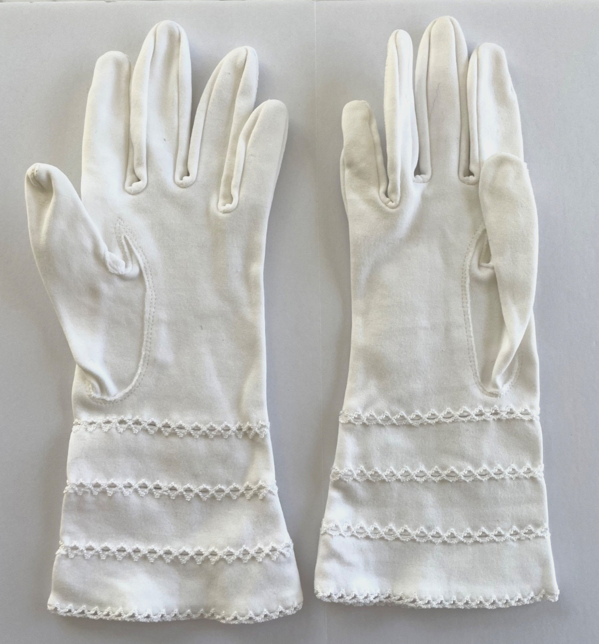 Vintage White Wrist Gloves With Cut Outs Embroidered Details- Sz 6 1/2
