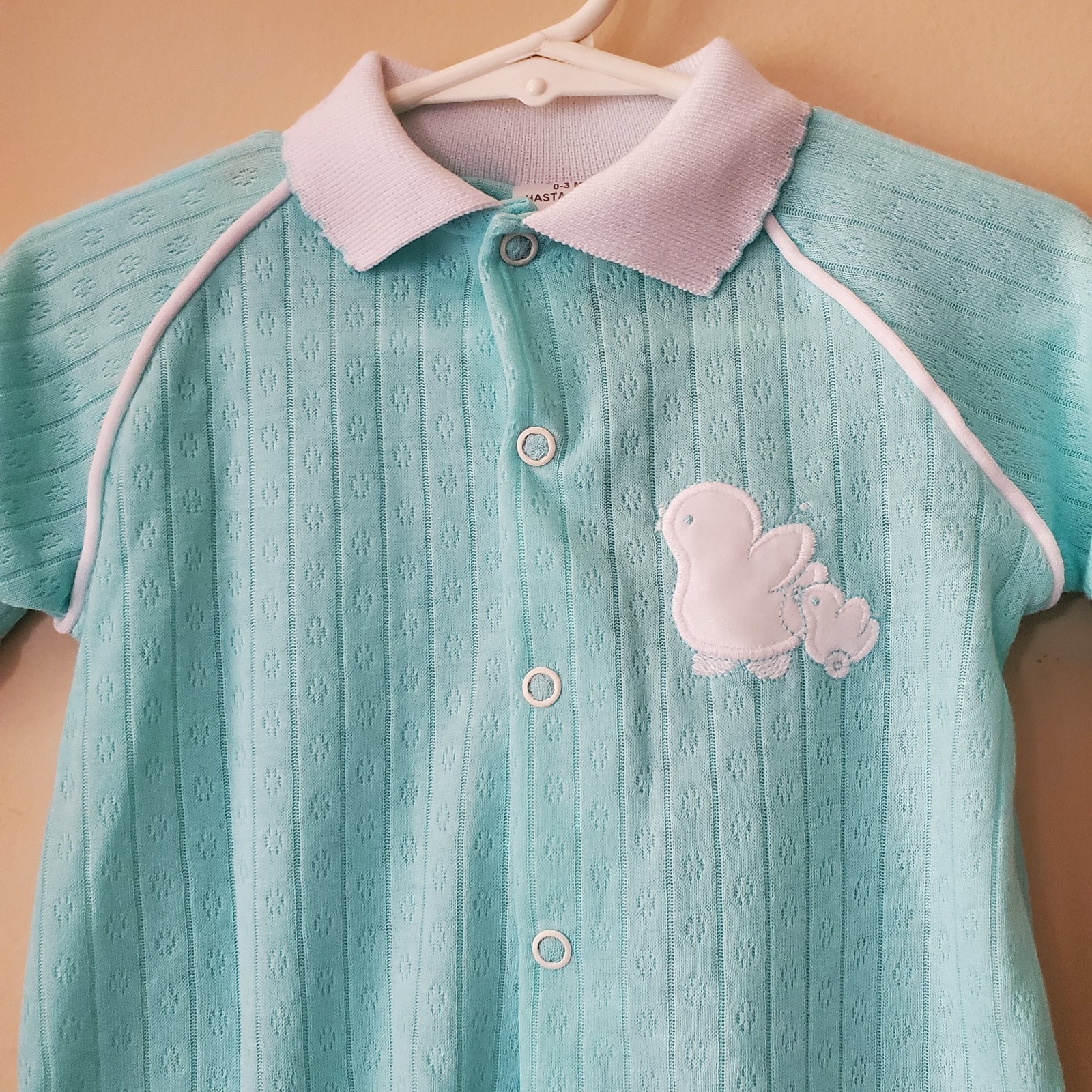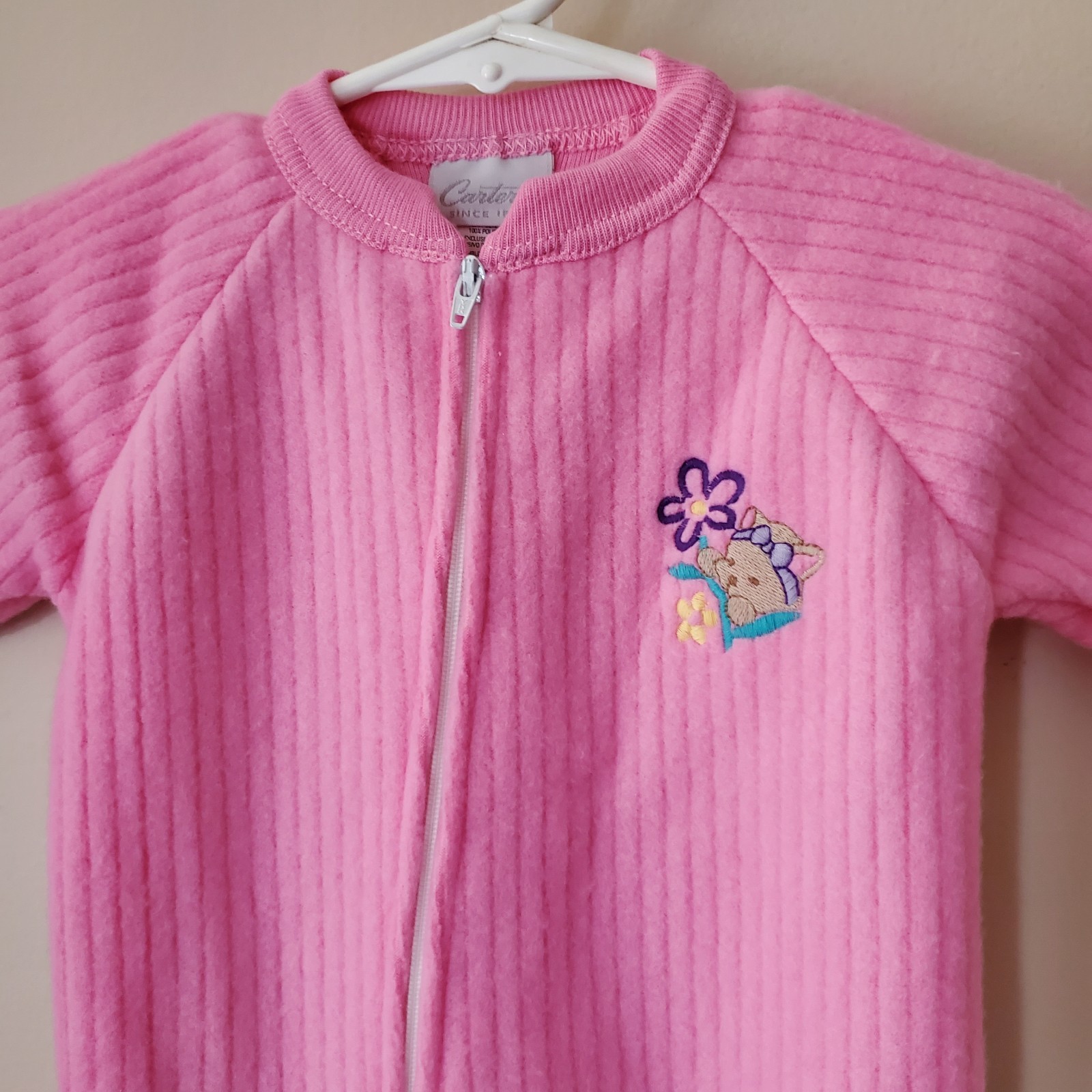 Vintage Deadstock Baby Footed Pajamas NWT Newborn 0-3m Pink Blue Cat Kitten Bird