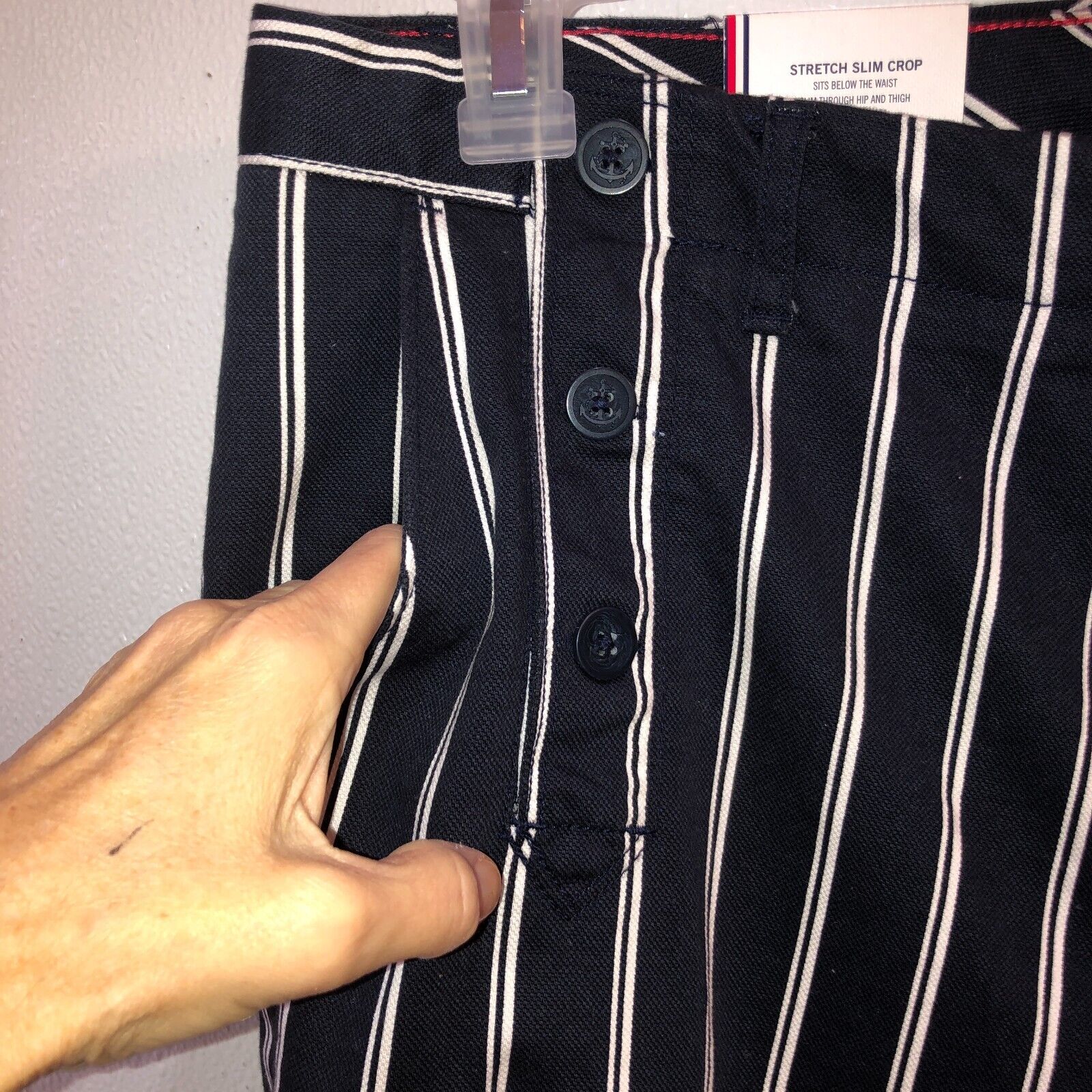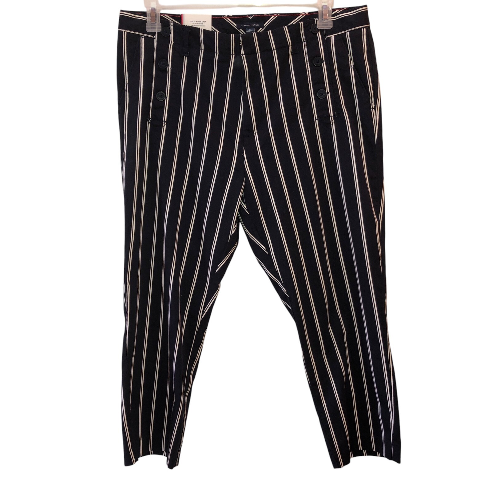 как выглядит Tommy Hilfiger Womens Size 16 Navy White Striped Stretch Slim Leg Crop Pants фото