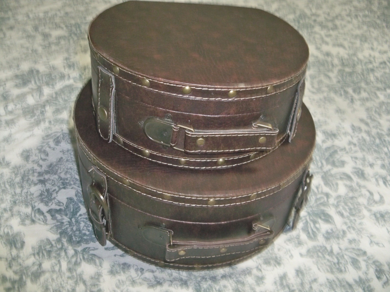 Leather Covered Hat Boxes Luggage Storage Case Pair Of 2