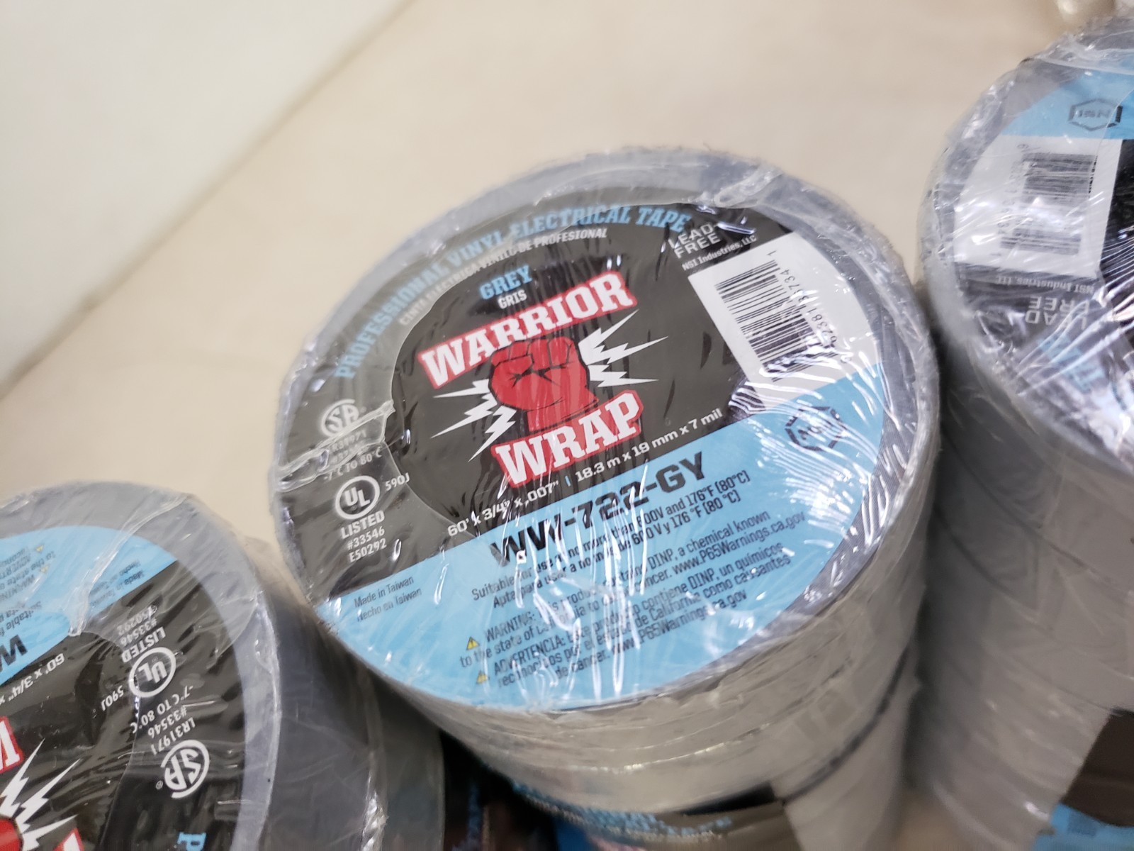 Lot of 38 - Warrior Wrap General 3/4 X 60 Ft. 7 Mil Vinyl Electrical Tape, Gray
