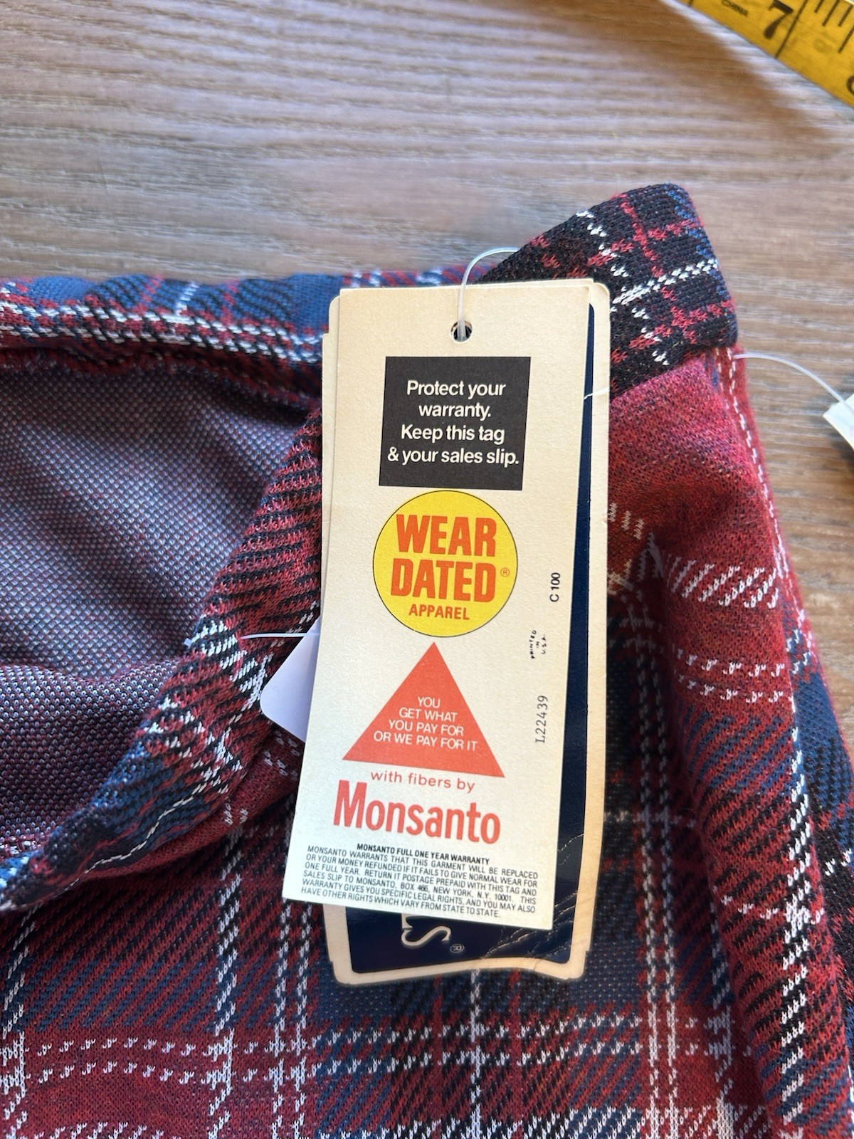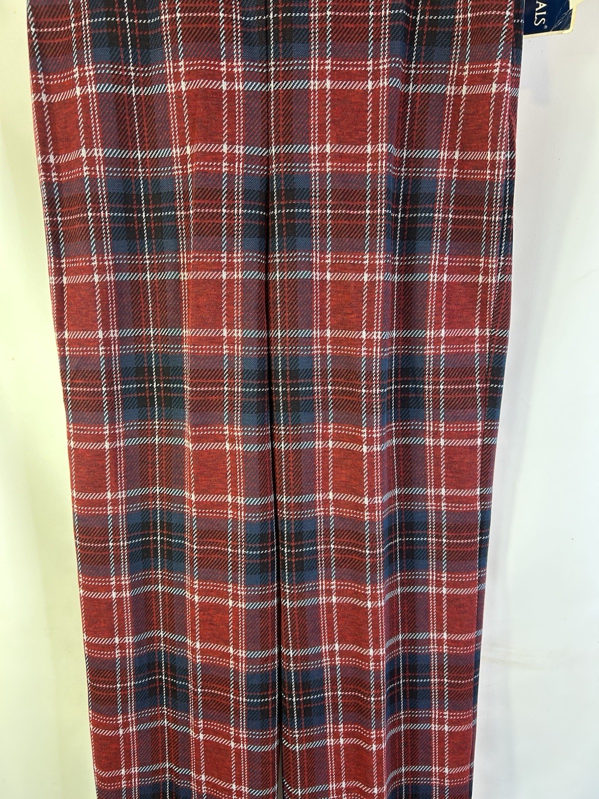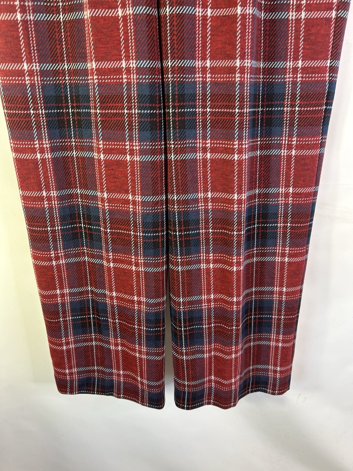 как выглядит Deadstock Vintage 70s Womens 16 Large Red Plaid Knit Wide Leg Flare Pants Preppy фото