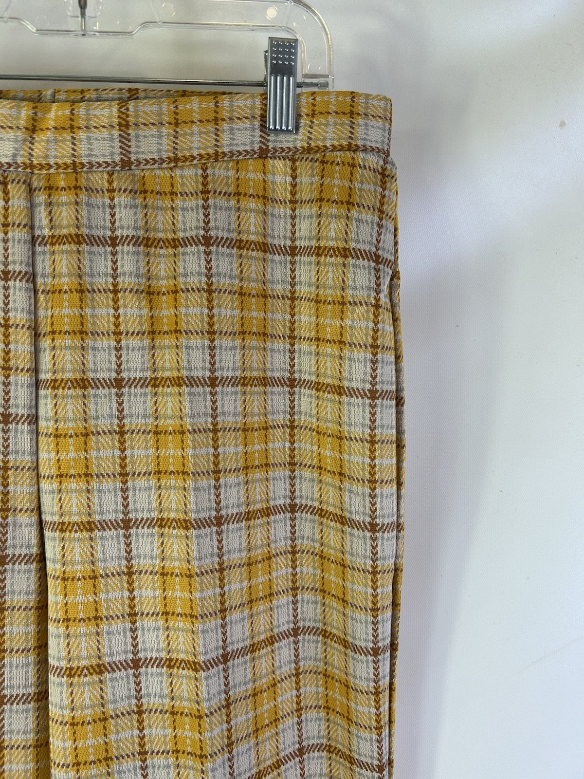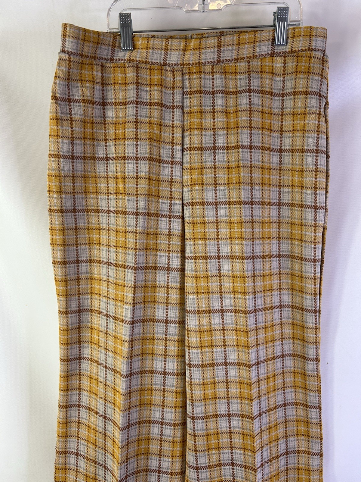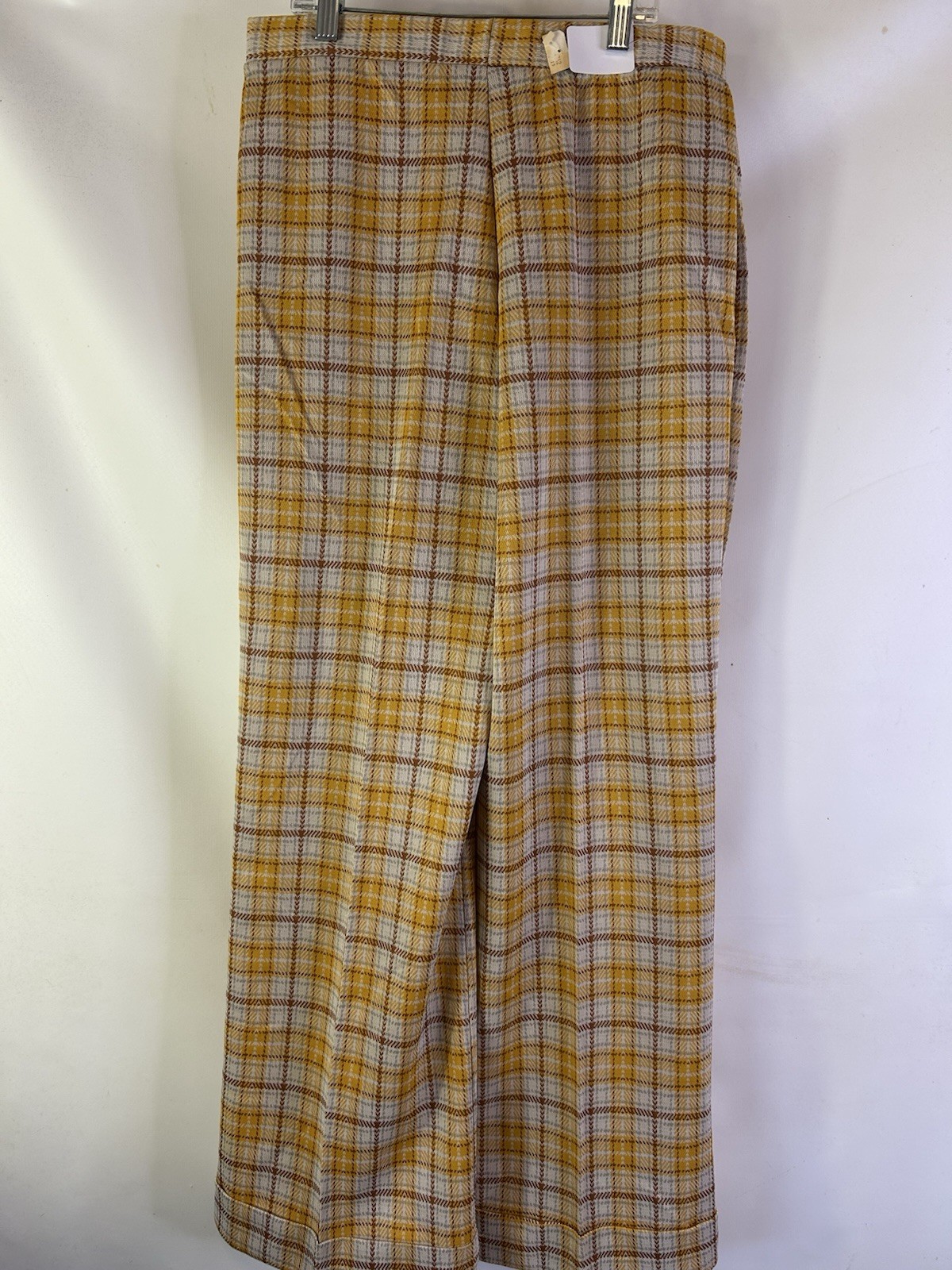 как выглядит Deadstock Vintage 60s Womens 14 Yellow Plaid High Rise Wide Leg Cuffed Pants USA фото