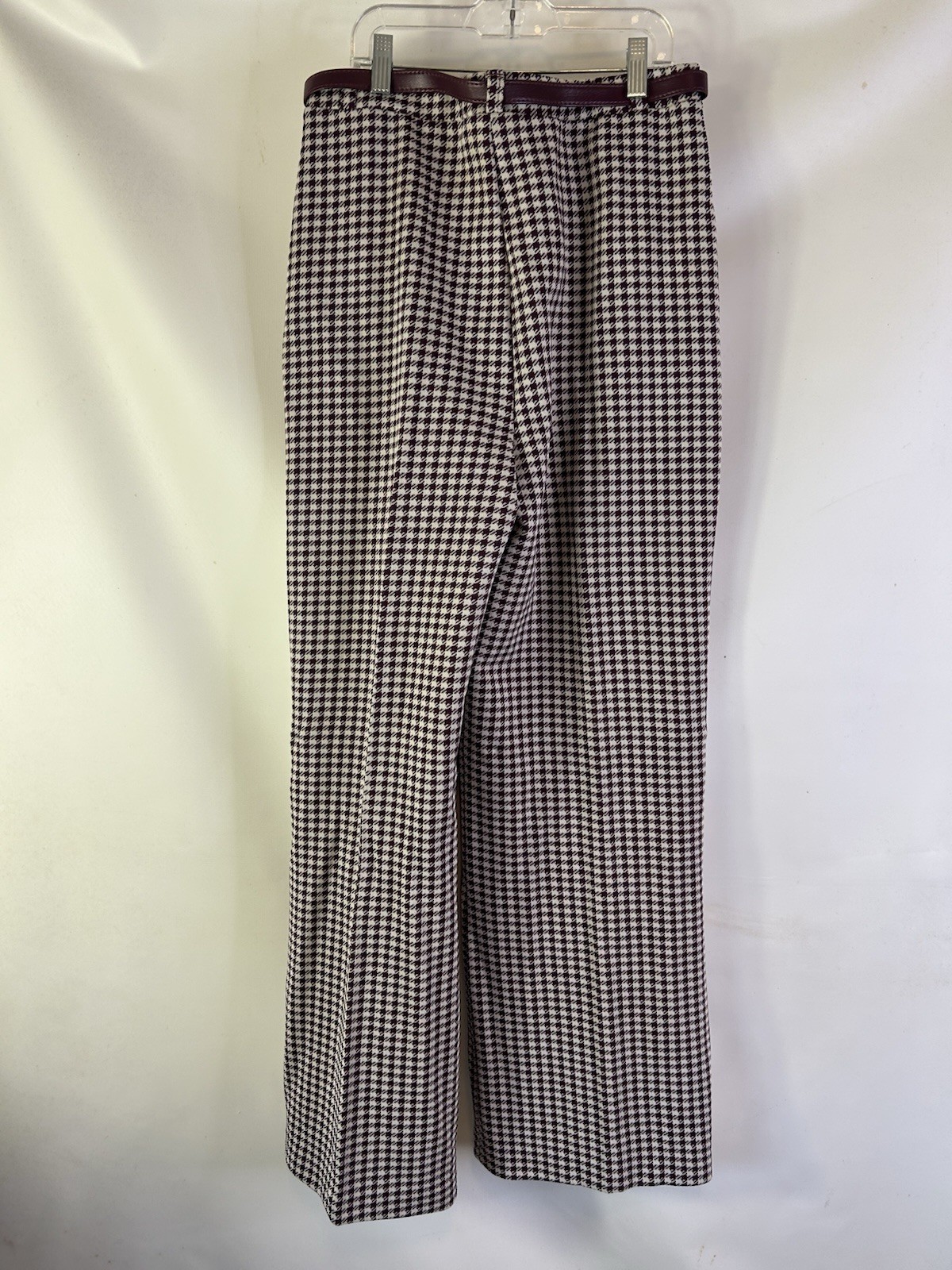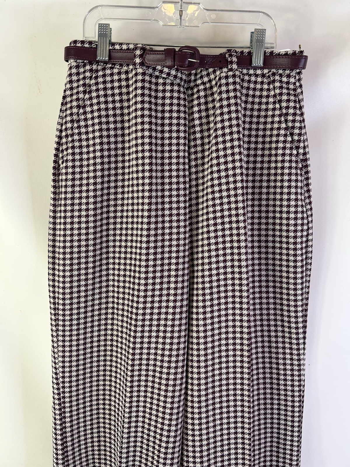 Vintage 70s Womens 14 Houndstooth Plaid Belted High Rise Pants Grunge Preppy USA