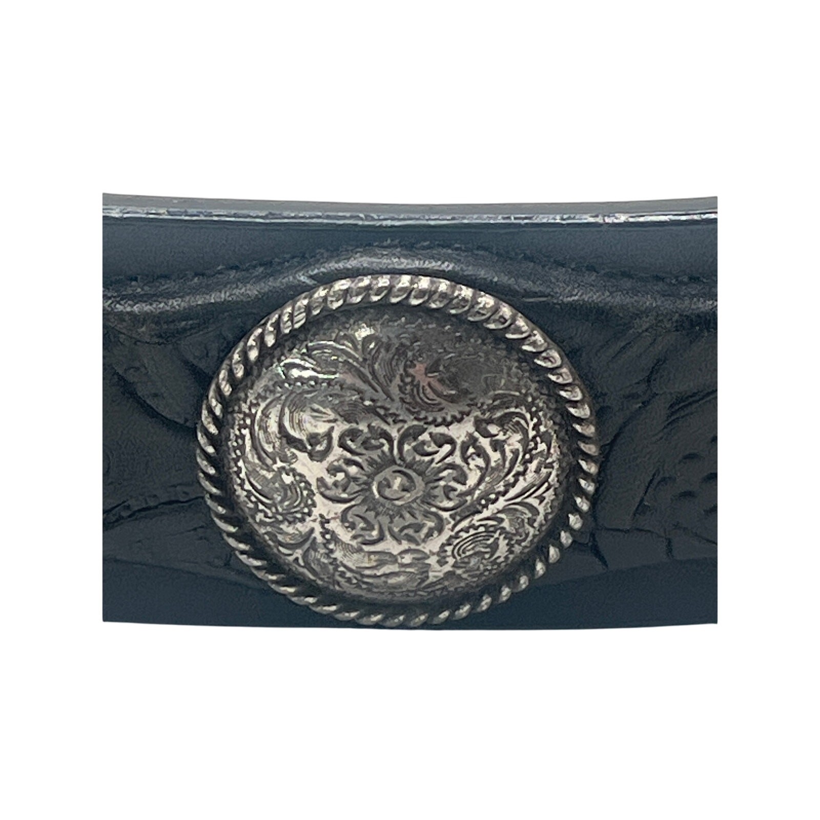 Western Floral Tooled Black Genuine Leather Silver Concho Belt Cowgirl Rustic