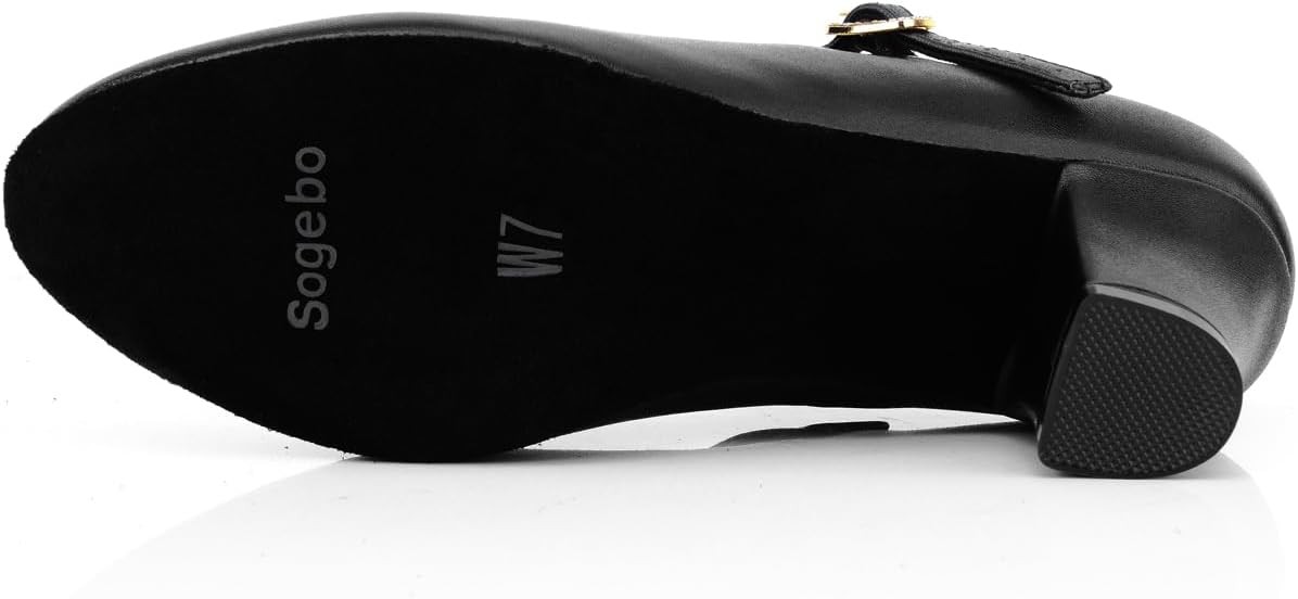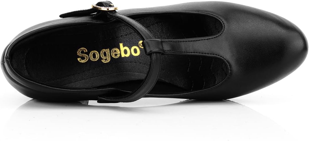 Women's T-Strap Character Shoes Latin Ballroom Dance Heels Black 7.5,