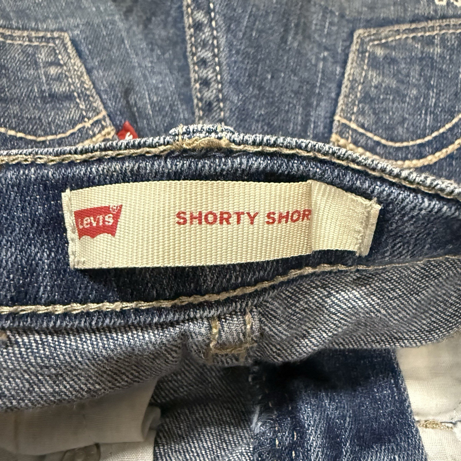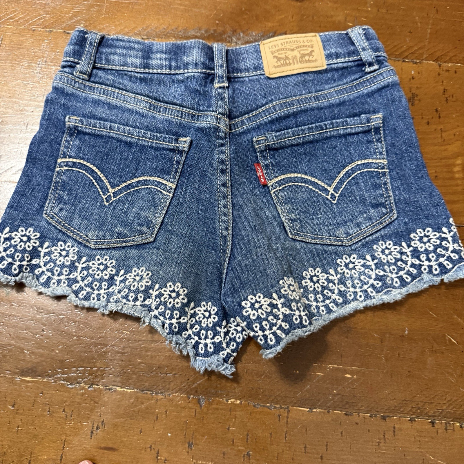 как выглядит Girls 6 Levis blue denim shorty shorts adjustable waist фото